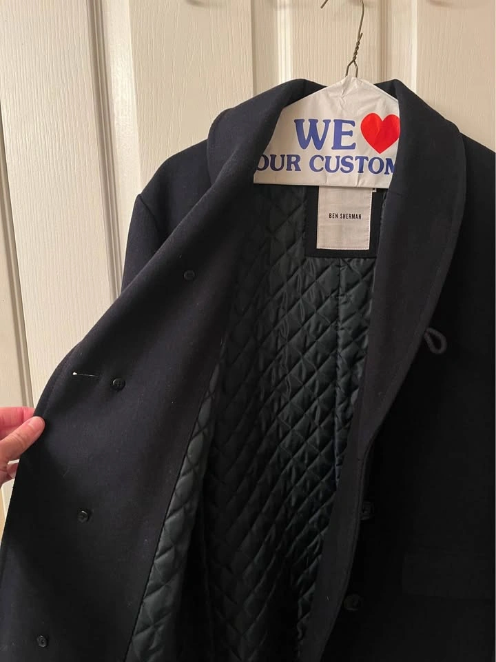 Buy & Sell(Retail $220+) Ben Sherman Navy Blue Double Breasted Peacoat(Retail $220+) Ben Sherman Navy Blue Double Breasted Peacoat$50Freshly dry cleaned, Retail $220+. Wool blend and freshly drycleaned. Size medium (~38-40)WHERE TO MEETCheck LocationView MapSELLERCoKitsilano14312 reviews0 chats·1 favorites·23 viewsSEND CHAT TO SELLERHi Co! I’m interested in your listing.Hi Co! I’m interested in your listing.Get the Karrot app to chatSign In to chat