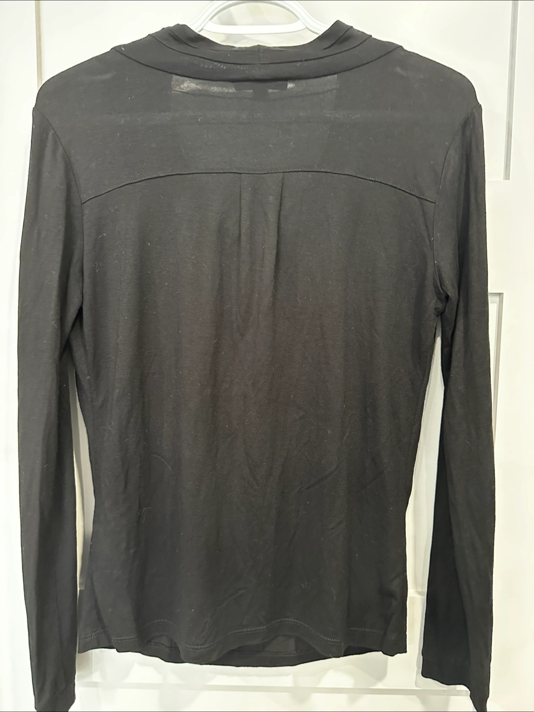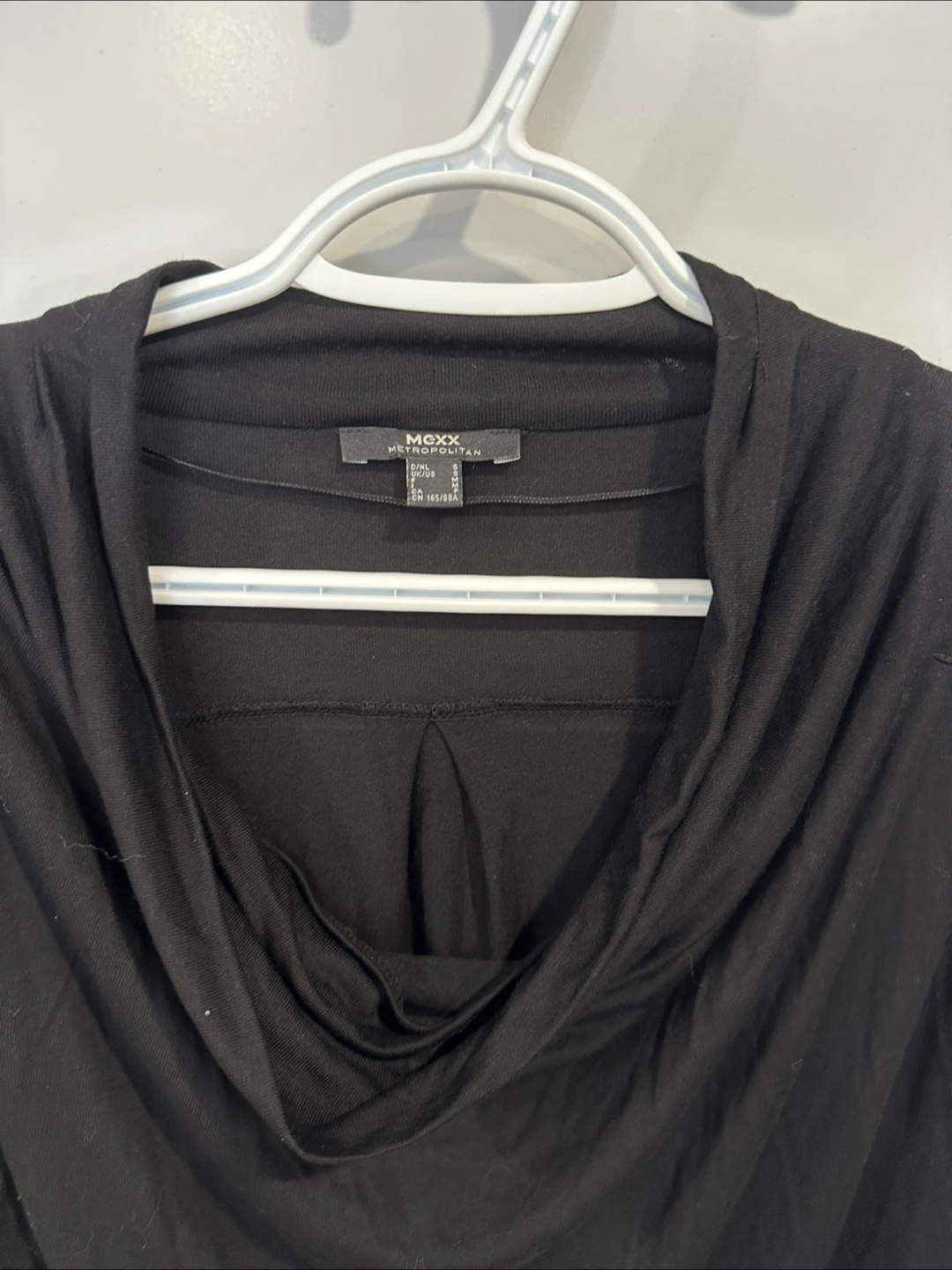 Selling a gently used Mexx Metropolitan black long-sleeve top. It features a stylish cowl neck and is a size small. Perfect for adding a touch of elegance to your wardrobe!