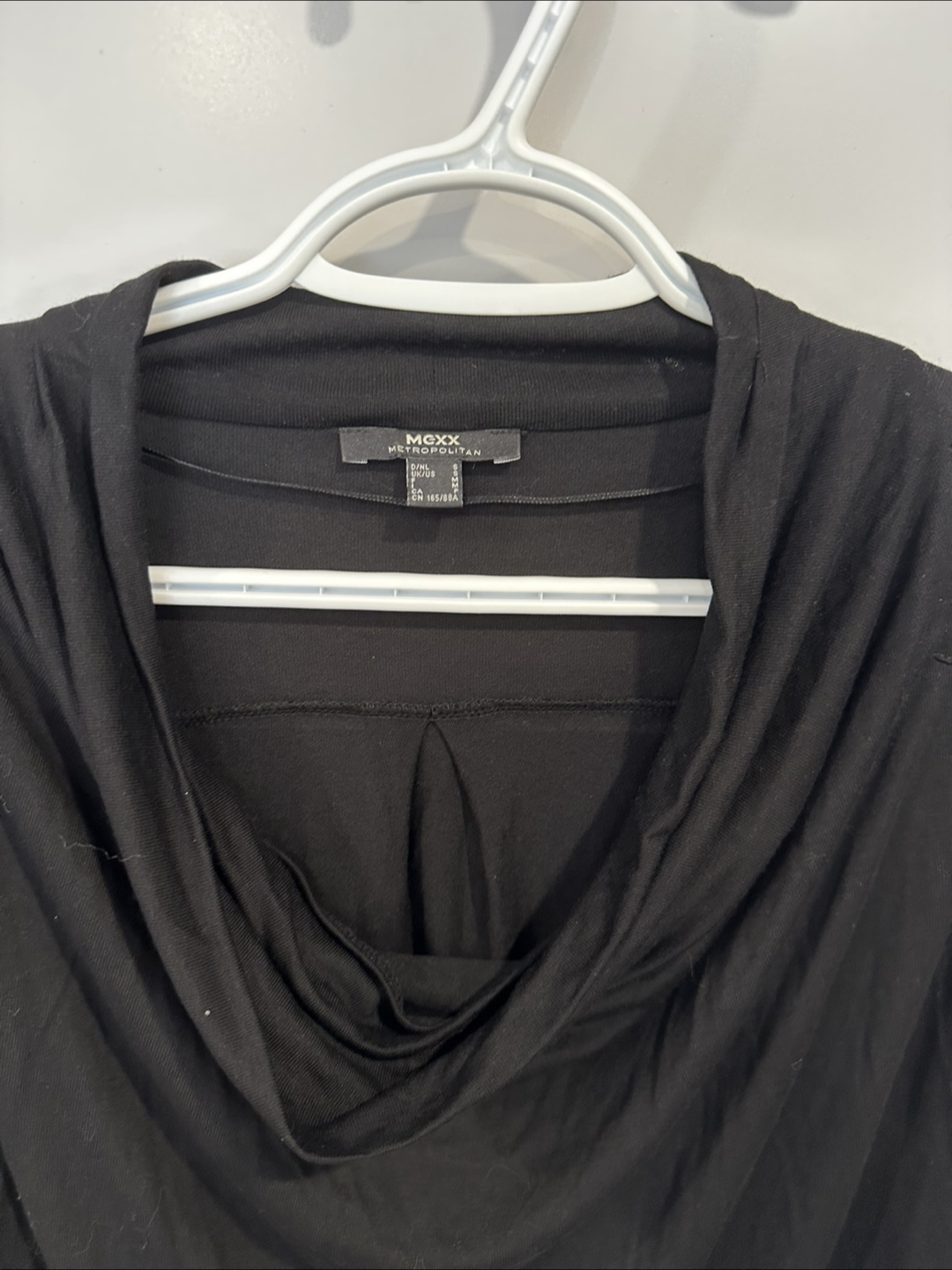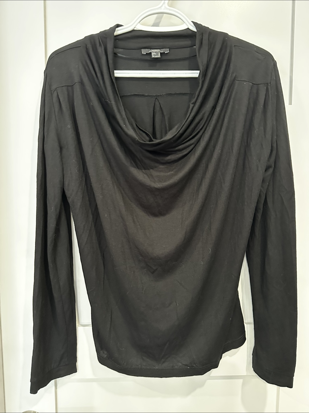 Selling a gently used Mexx Metropolitan black long-sleeve top. It features a stylish cowl neck and is a size small. Perfect for adding a touch of elegance to your wardrobe!