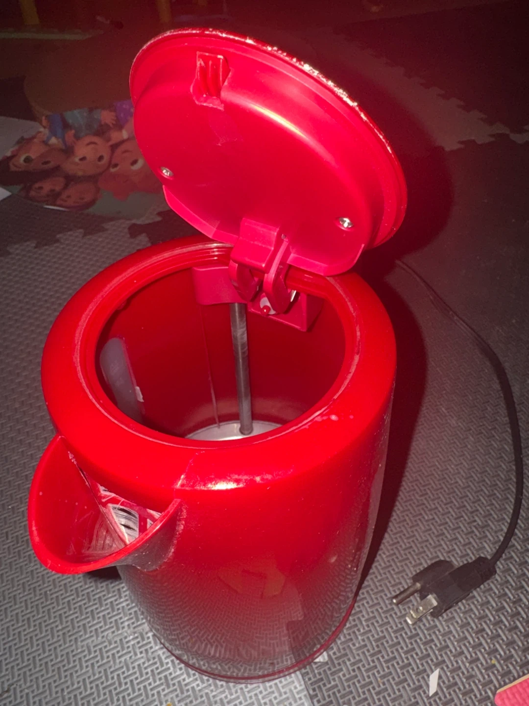 Toastmaster electric kettle in a bright red colour. It has a water level indicator and a capacity of 1.7L. Perfect for quickly boiling water for tea or coffee.