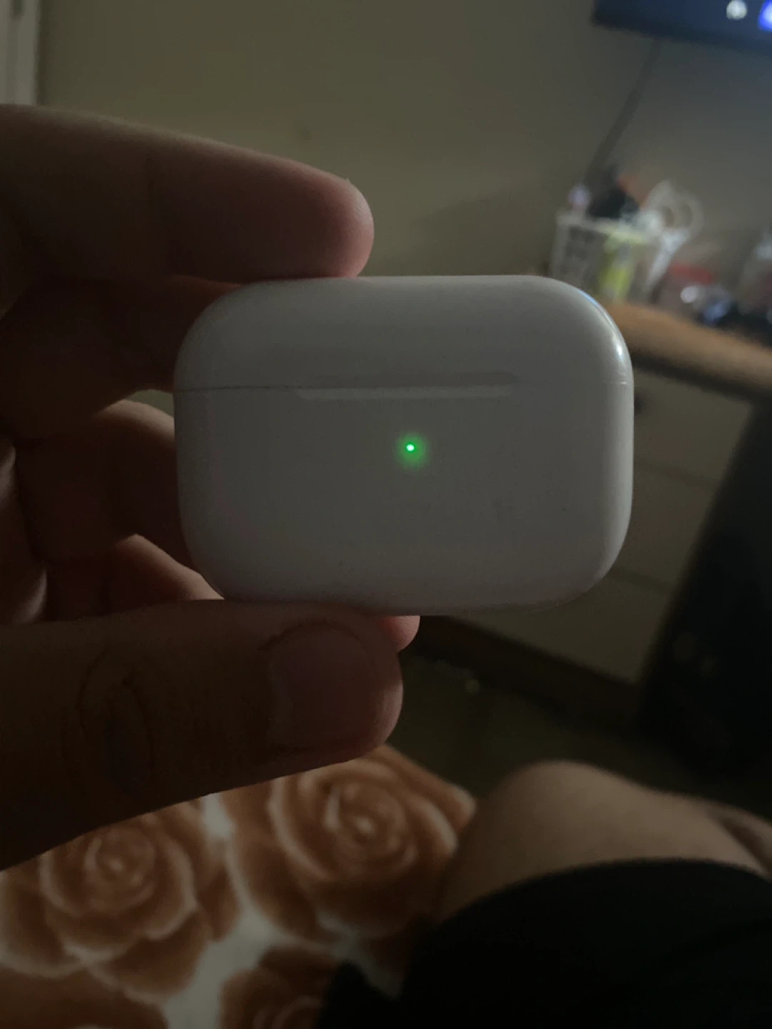 Charging case for Apple AirPods Pro (2nd Generation). It's white and includes the charging case. Supports wireless charging pretty sure they’re real but like really beat up