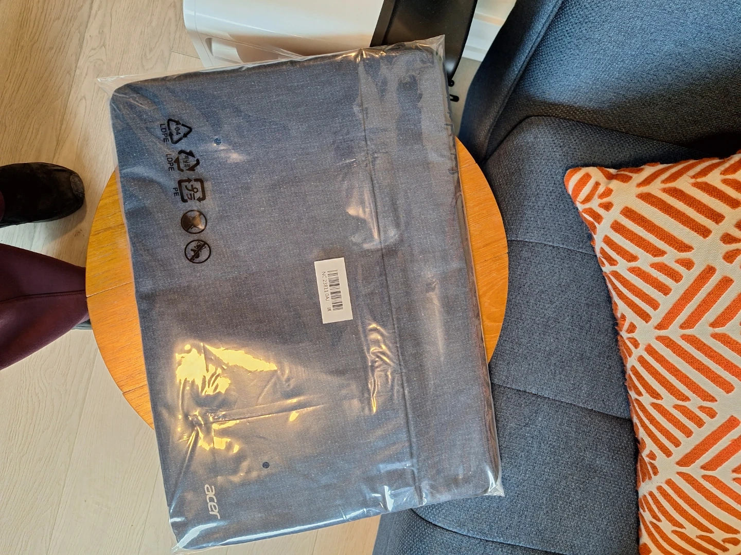 This is a blue laptop sleeve case from Acer. It fits laptops up to 15 inches. The sleeve's dimensions are approximately 15 inches by 10 inches.