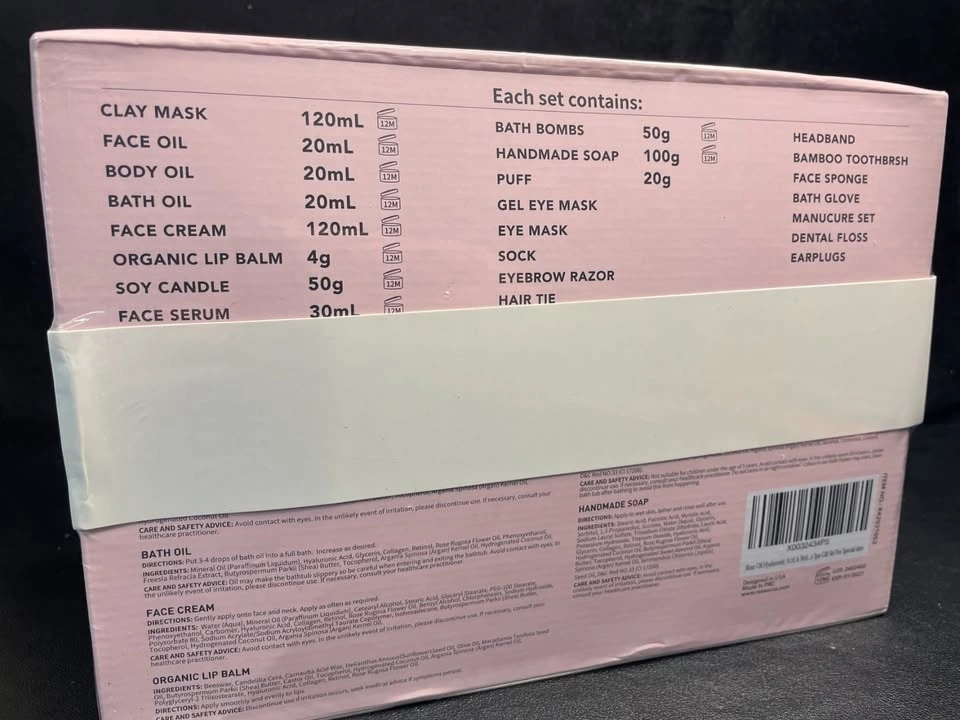New Sealed! This is a great gift for Valentine's Day, birthdays, or any occasion. It's a 30-piece spa gift set for women, featuring rose facial skincare, face cream, bath oil, serum, and shower accessories. It's a complete bath and body facial kit.