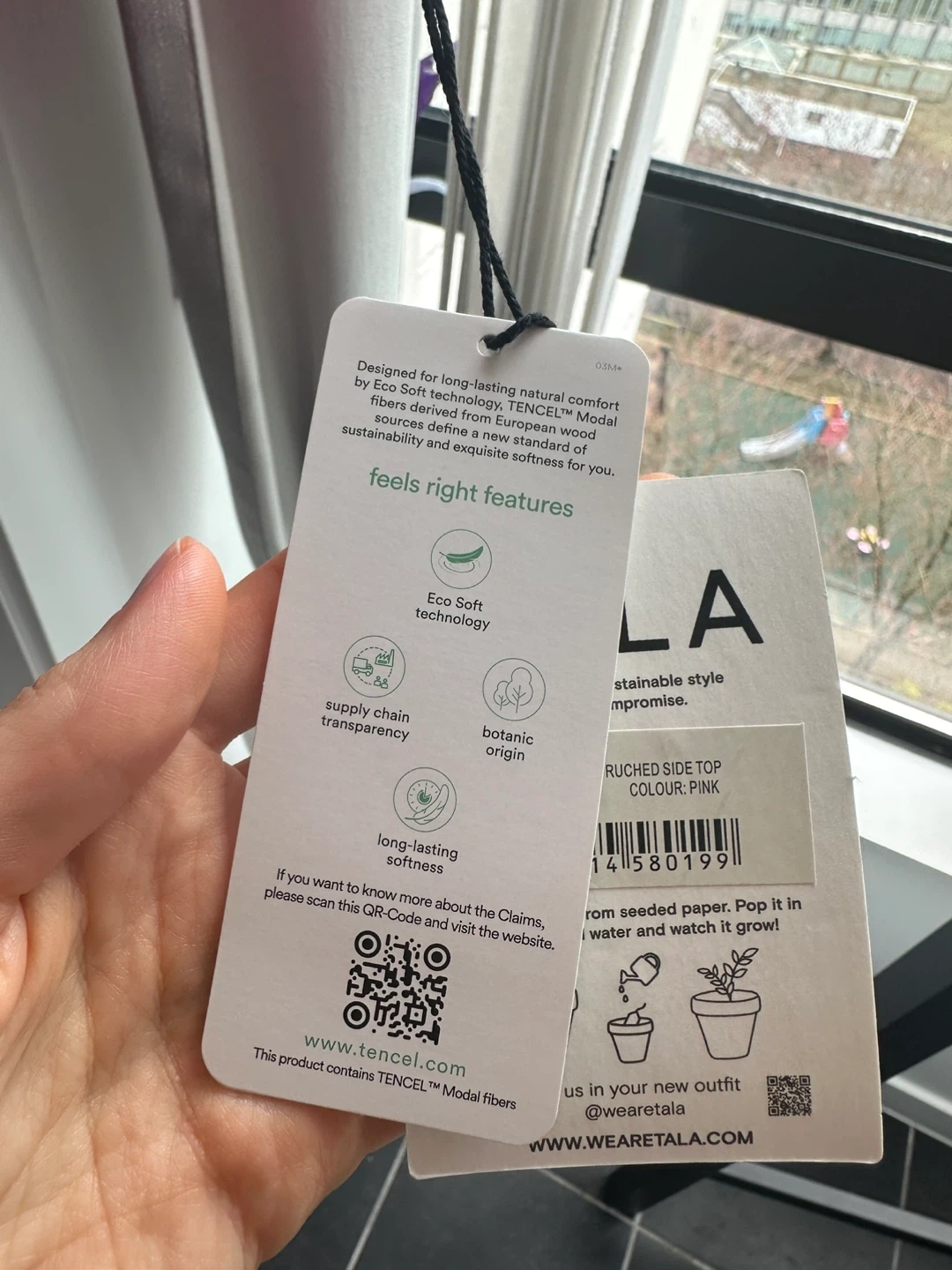 Tala 365 asymmetric ruched side top in pink. Made with Tencel Modal fibers for long-lasting natural comfort and softness. Size medium. Includes original tags.
