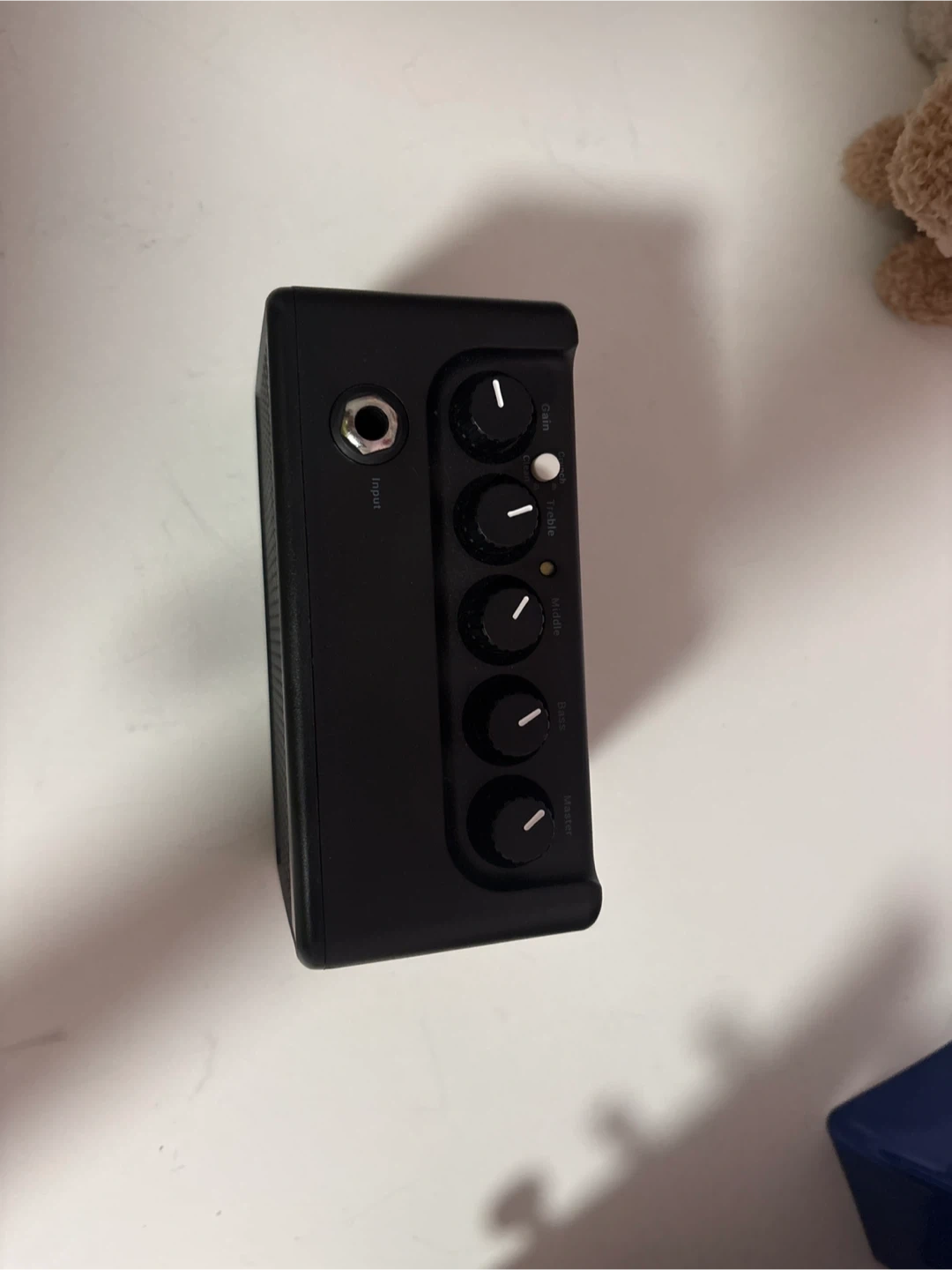 This amp is compact and versatile practice amp. It features an input jack, gain, tone, bass, and master volume controls. It also includes an aux in port and headphone jack.