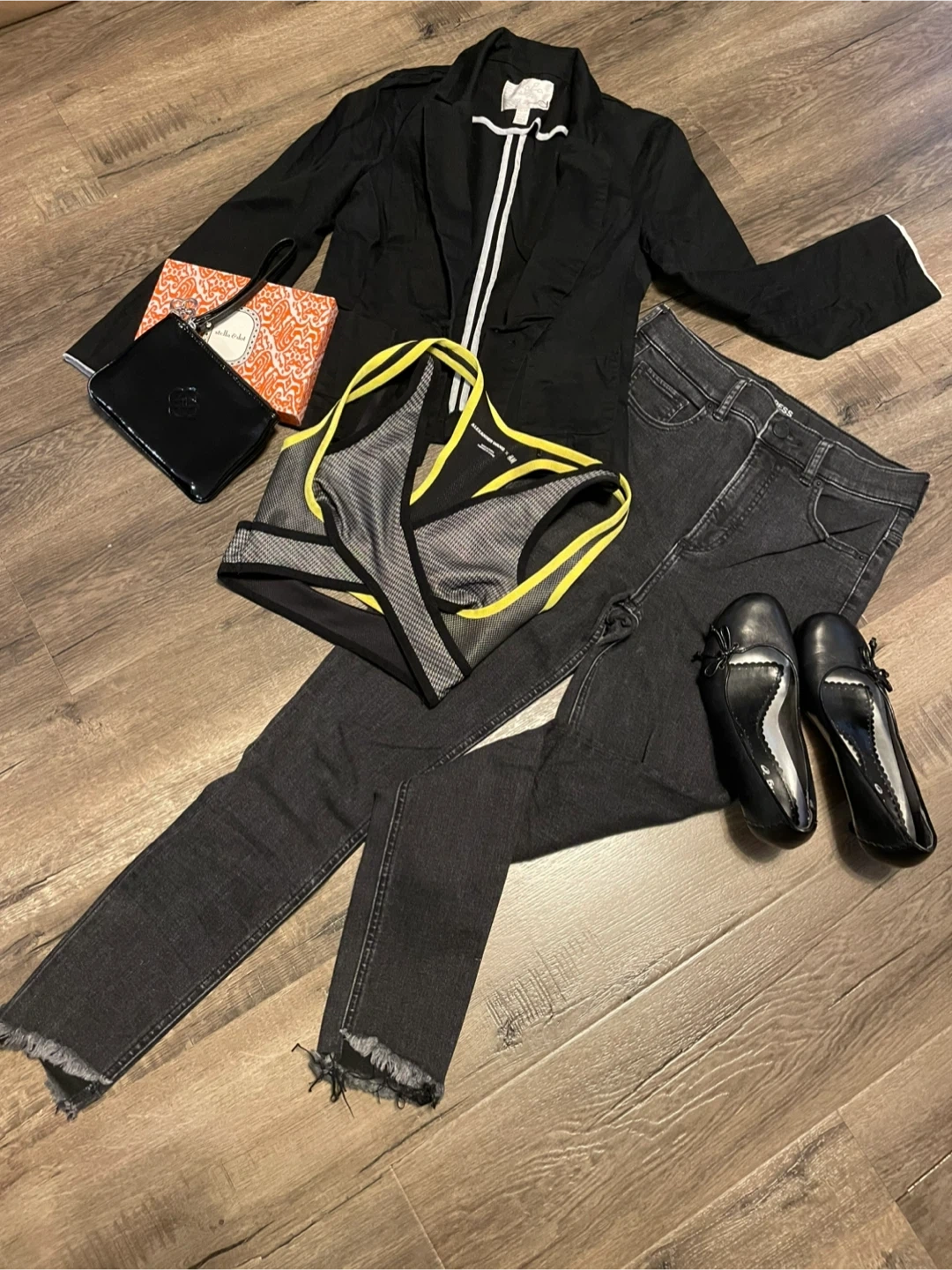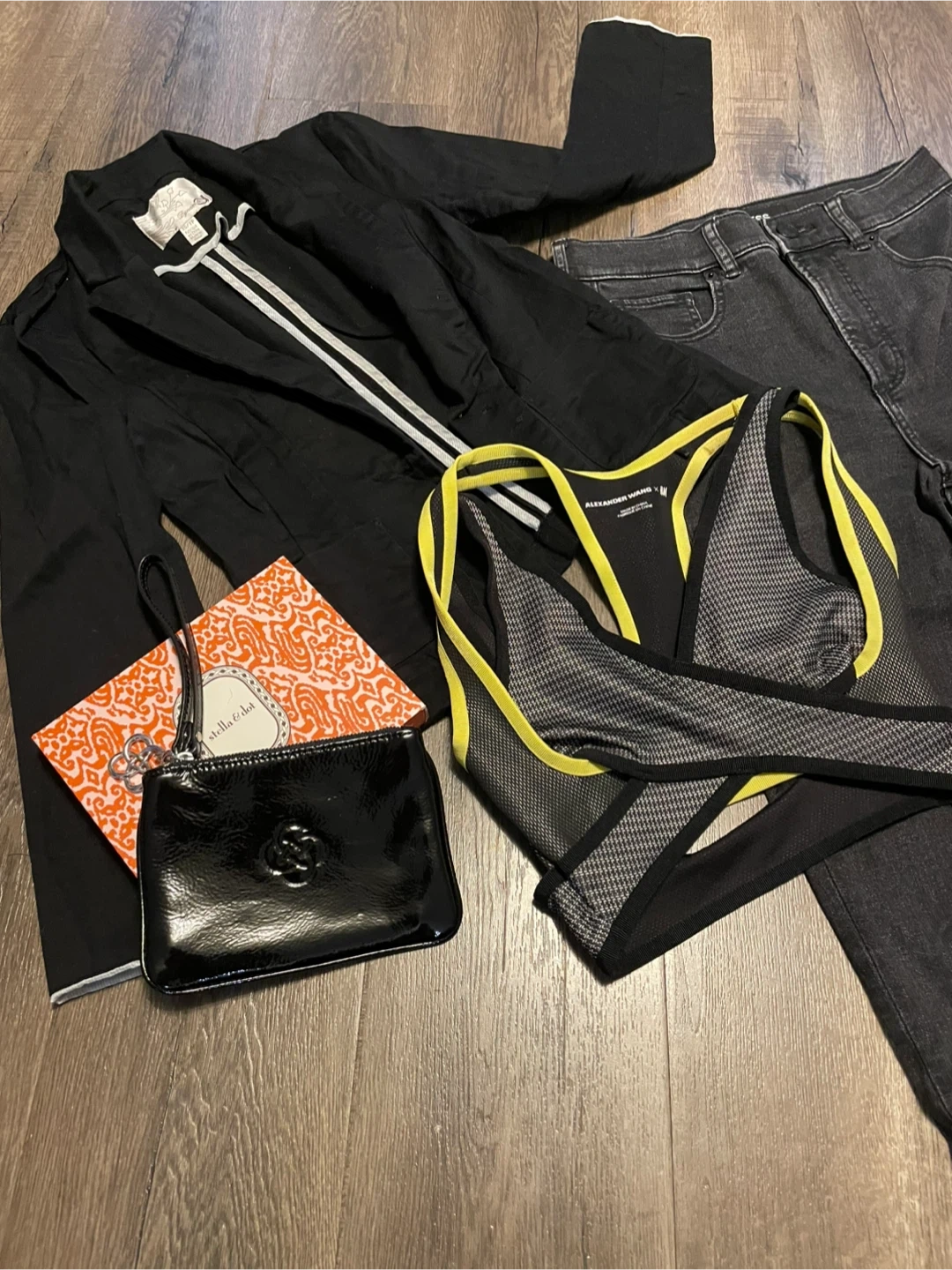 Alexander Wang x H&M bra with a stylish black and grey houndstooth pattern and bright yellow trim. It's designed for comfort and performance (Size 2) - $20