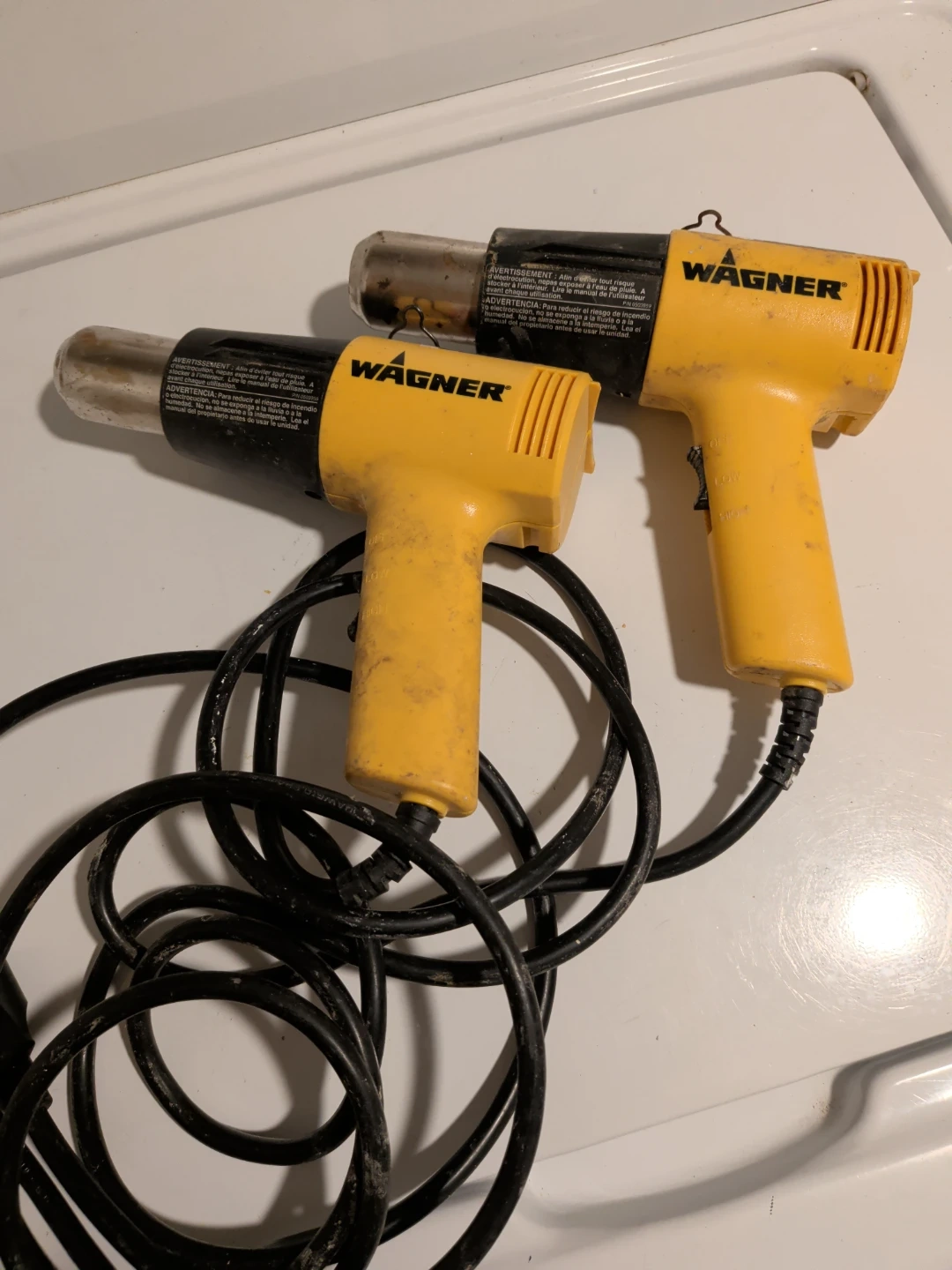 Selling two yellow Wagner heat guns with black cords. These are handy tools for various DIY projects. Both units have a power cord attached. They're ready for their next use! 2 for $25 ..one for $15