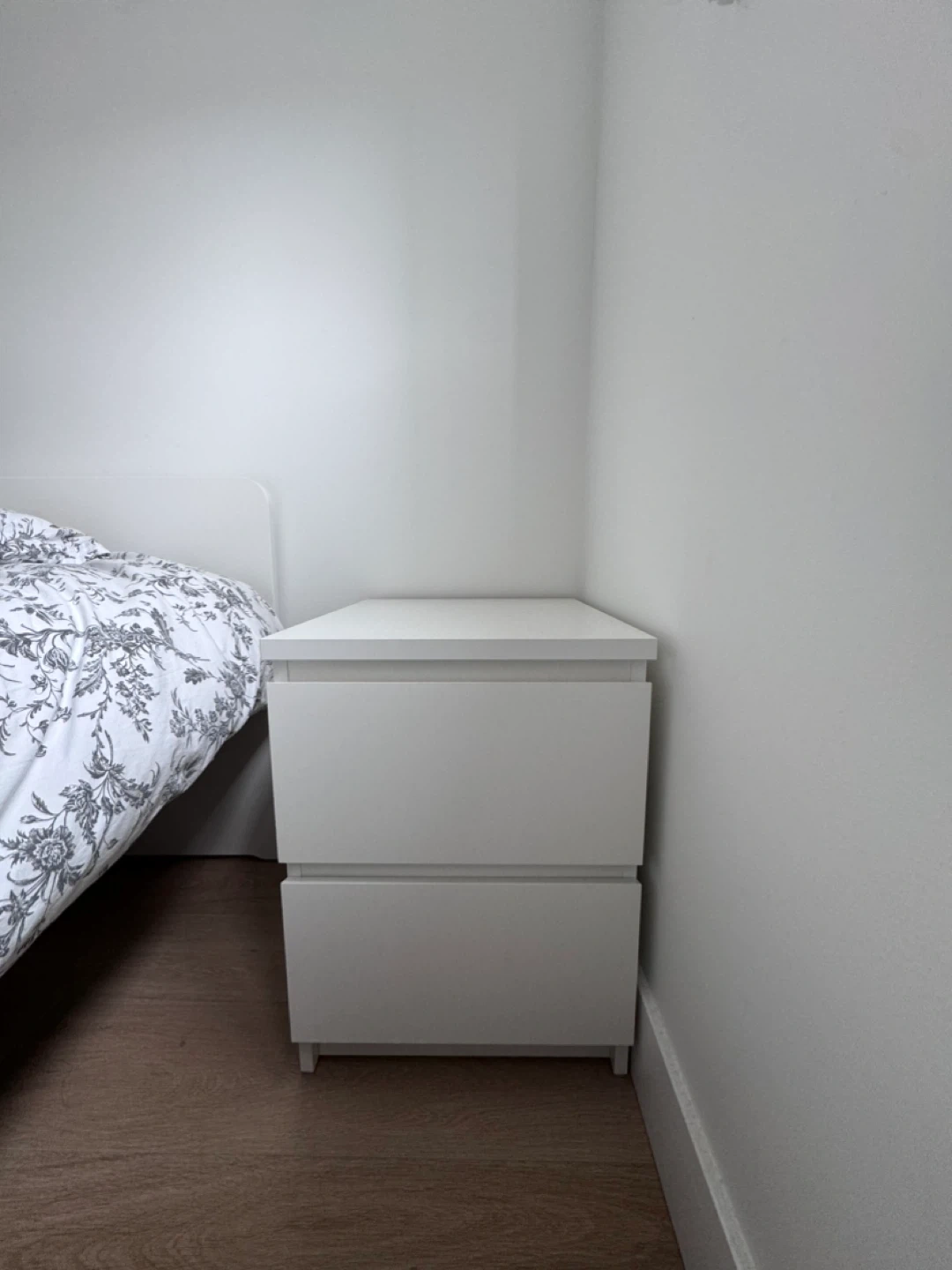 White nightstand, perfect for bedside storage. Its clean lines and white finish make it a versatile addition to any bedroom. Easy-access drawers are great for keeping essentials handy. This is not my nightstand - I’m selling it for a girl that’s moving back to Mexico. Would like to sell by March 31 - posting it on March 30
