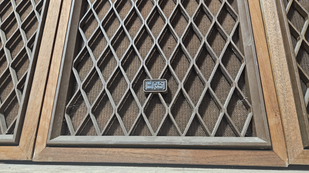 Selling a set of 2Realistic and 2 RS speakers. They have a wooden frame and a brown mesh grill.