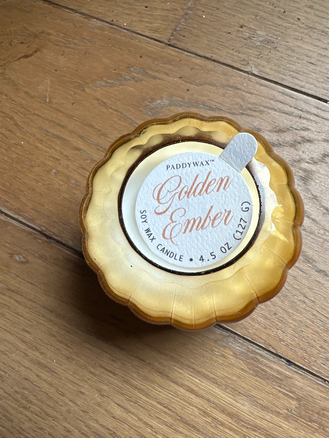 This is a Paddywax Golden Ember soy wax candle. It's a 4.5 oz candle. Provides a warm and inviting glow.