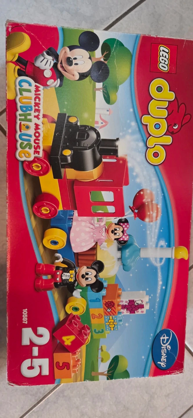 This is a LEGO Duplo set featuring Mickey Mouse and Minnie Mouse. It includes a buildable train with wagons and characters. Recommended for ages 2-5.