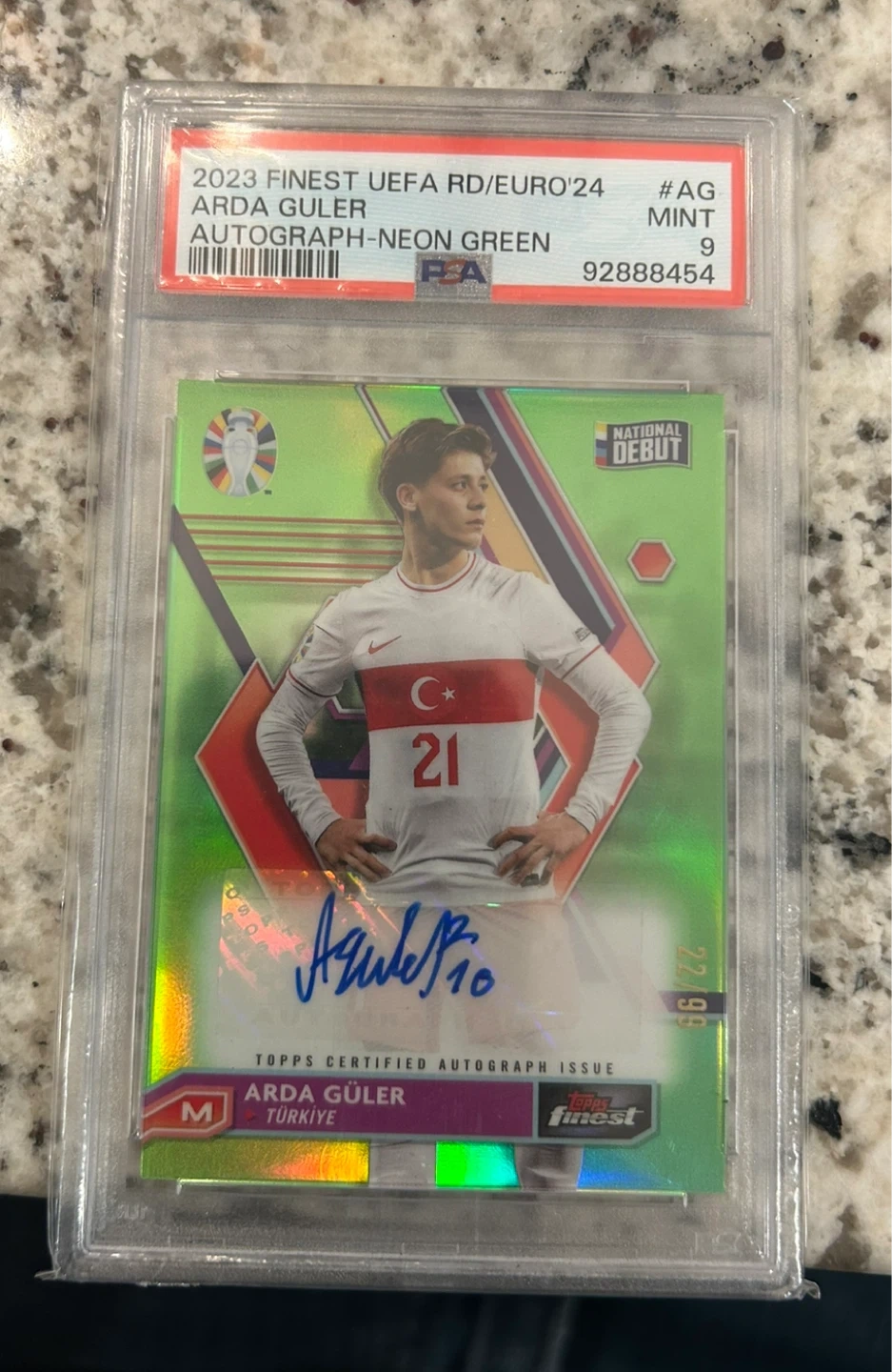 Buy & Sell2023 Topps Finest Arda Guler Autograph Neon Green PSA 92023 Topps Finest Arda Guler Autograph Neon Green PSA 9$1802023 Topps Finest UEFA Euro '24 Arda Guler Autograph Neon Green card. This is the National Debut issue, serial numbered 22/99. Graded Mint 9 by PSA.WHERE TO MEETScotiabankView MapSELLERverifiedShaneChurchill Meadows600 reviews0 chats·0 favorites·6 viewsSEND CHAT TO SELLERHi Shane! I’m interested in your listing.Hi Shane! I’m interested in your listing.Get the Karrot app to chatSign In to chat