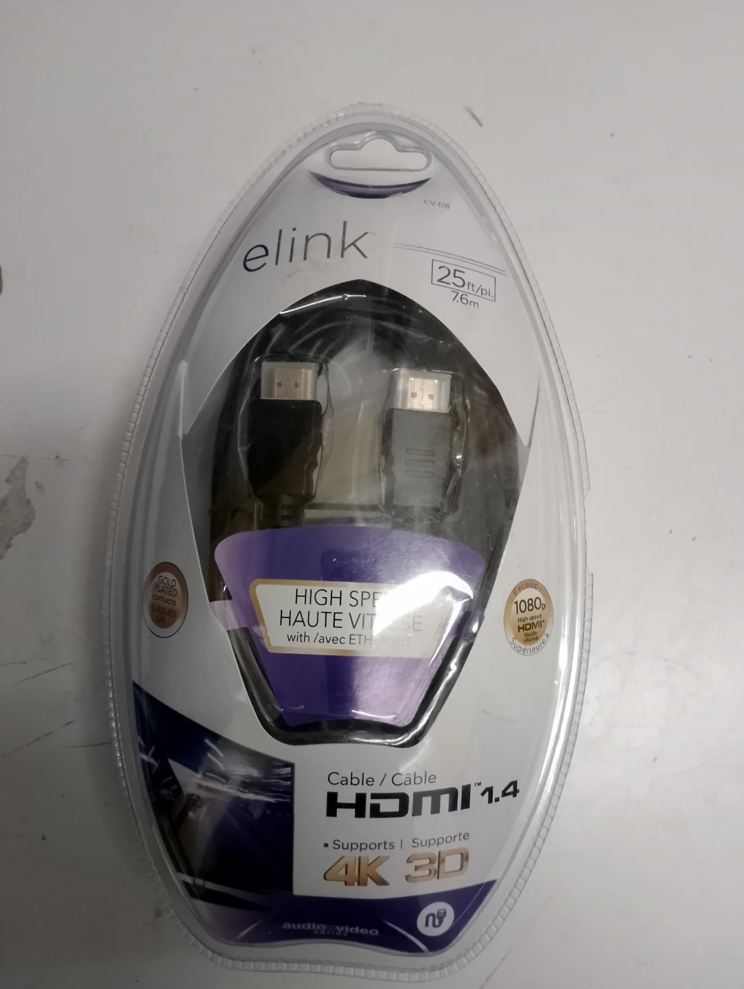 Selling a brand new elink HDMI cable, still in its original packaging! It's 25ft (7.62m) long and supports 4K and 3D video. Perfect for connecting your devices with high speed and Ethernet capability