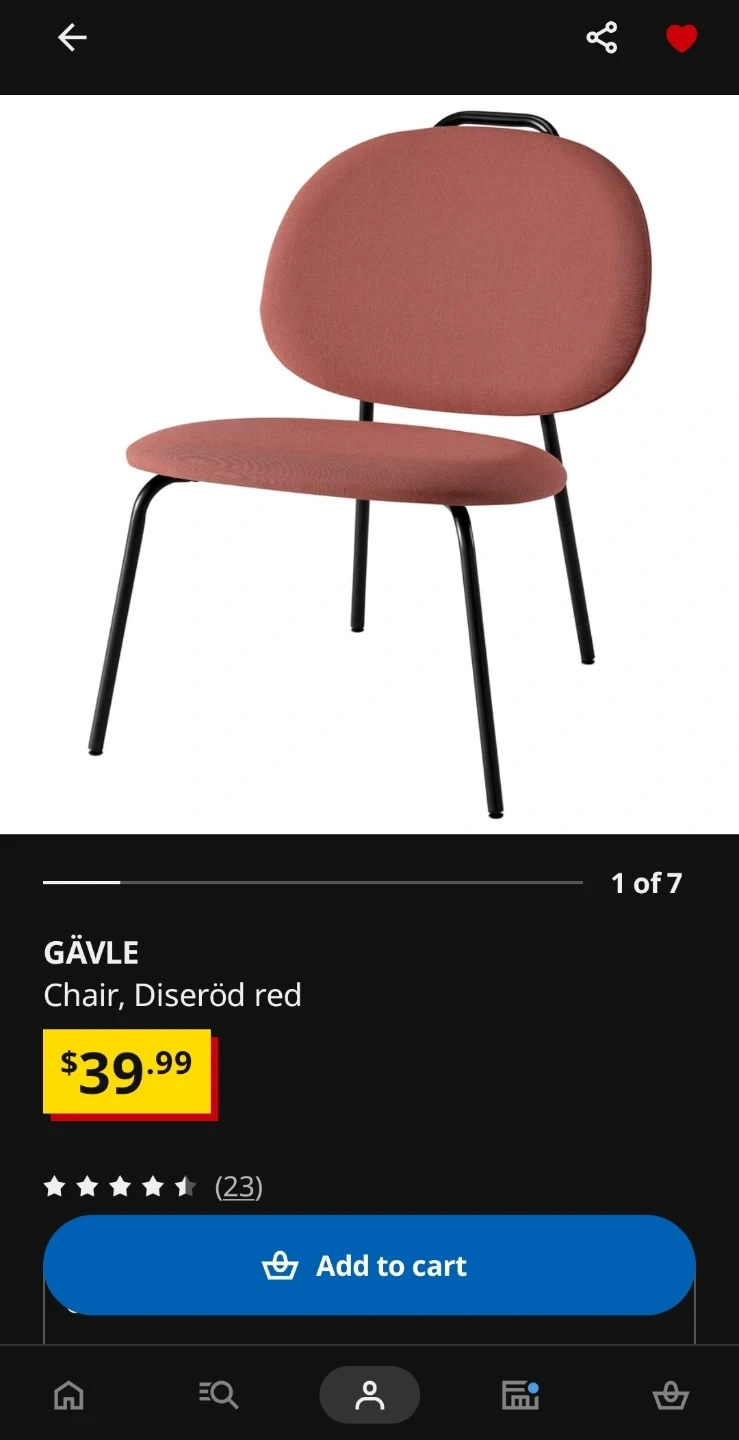 This is a Gävle chair in Diseröd red. It has a fabric upholstered seat and back with black metal legs. A stylish accent chair for any room!