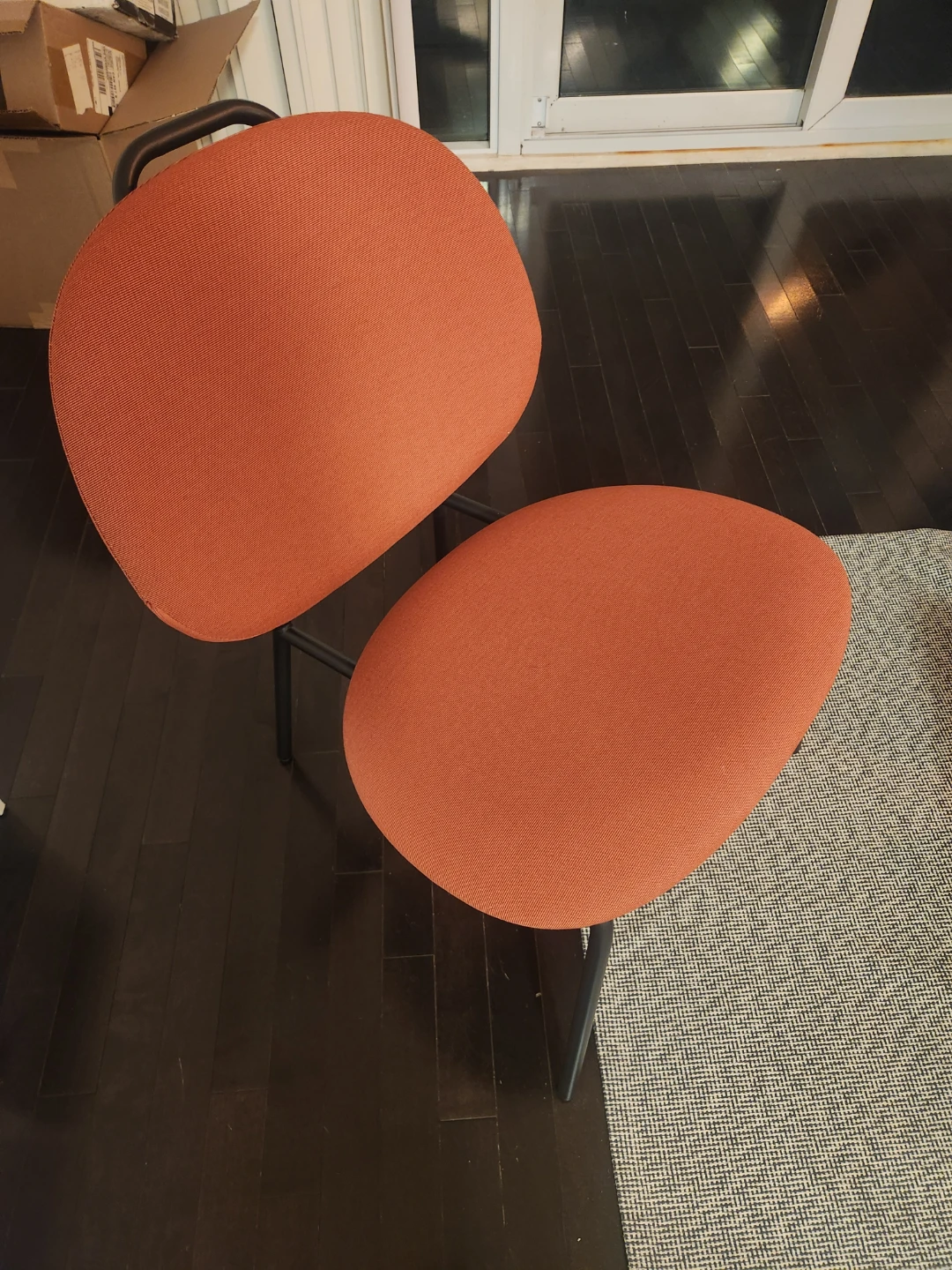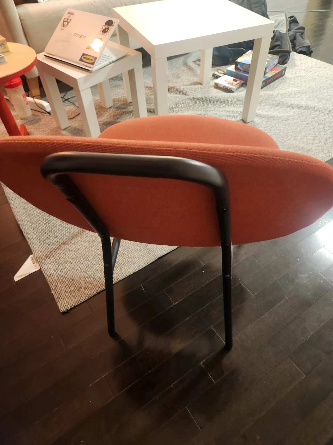 This is a Gävle chair in Diseröd red. It has a fabric upholstered seat and back with black metal legs. A stylish accent chair for any room!