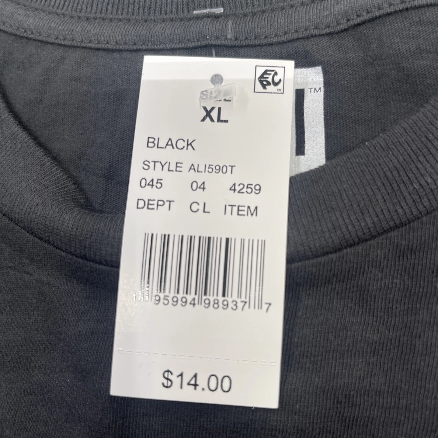 New with tags. Men's graphic t-shirt, short sleeve, crew neck, size XL, black, cotton. Machine washable.
