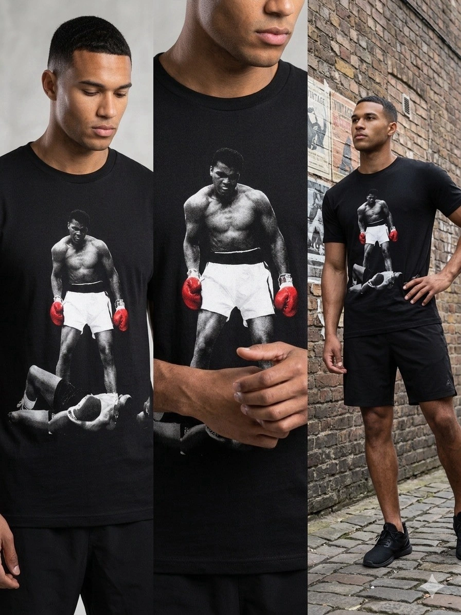 Mohammed Ali Men’s Graphic Boxing Tee Black Red Gloves XL