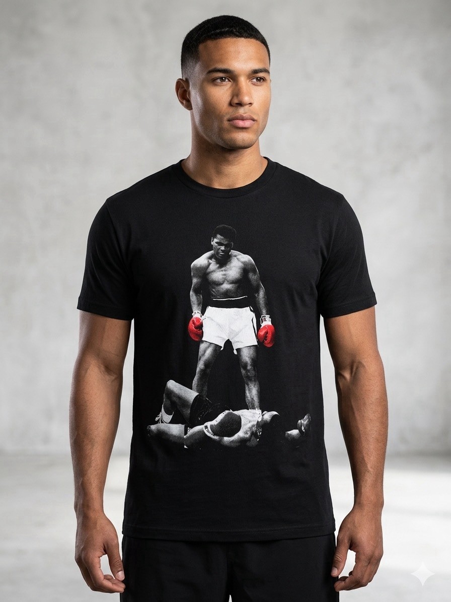 Mohammed Ali Men’s Graphic Boxing Tee Black Red Gloves XL