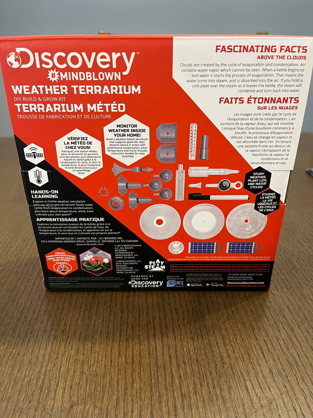 This is a brand new, unopened Discovery Mindblown Weather Terrarium kit.