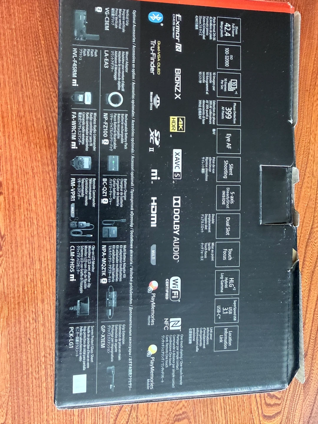 Sony Alpha a7R III interchangeable lens digital camera. It's a full-frame camera with an E-mount. Includes camera body and cap and two π Sony batteries. It's black. Original box included and 2 128 GB Sd cards 300MB/s LEXAR