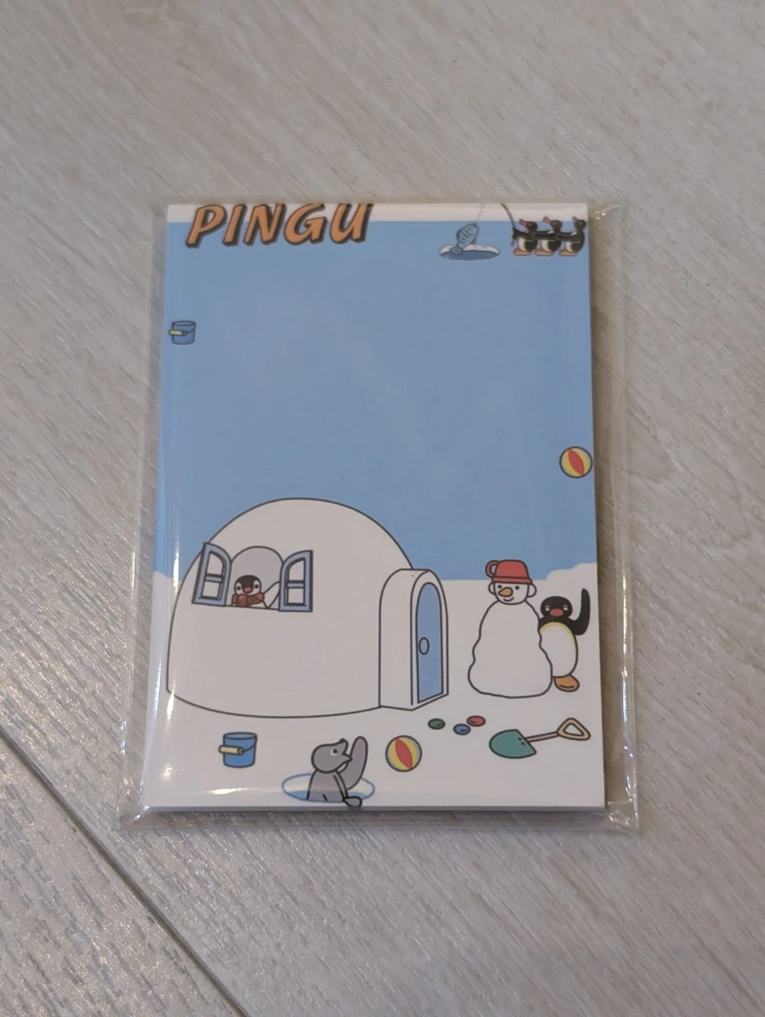 Cute Pingu themed notepad. It features Pingu characters in a snowy scene. Perfect for jotting down quick notes or to-do lists!