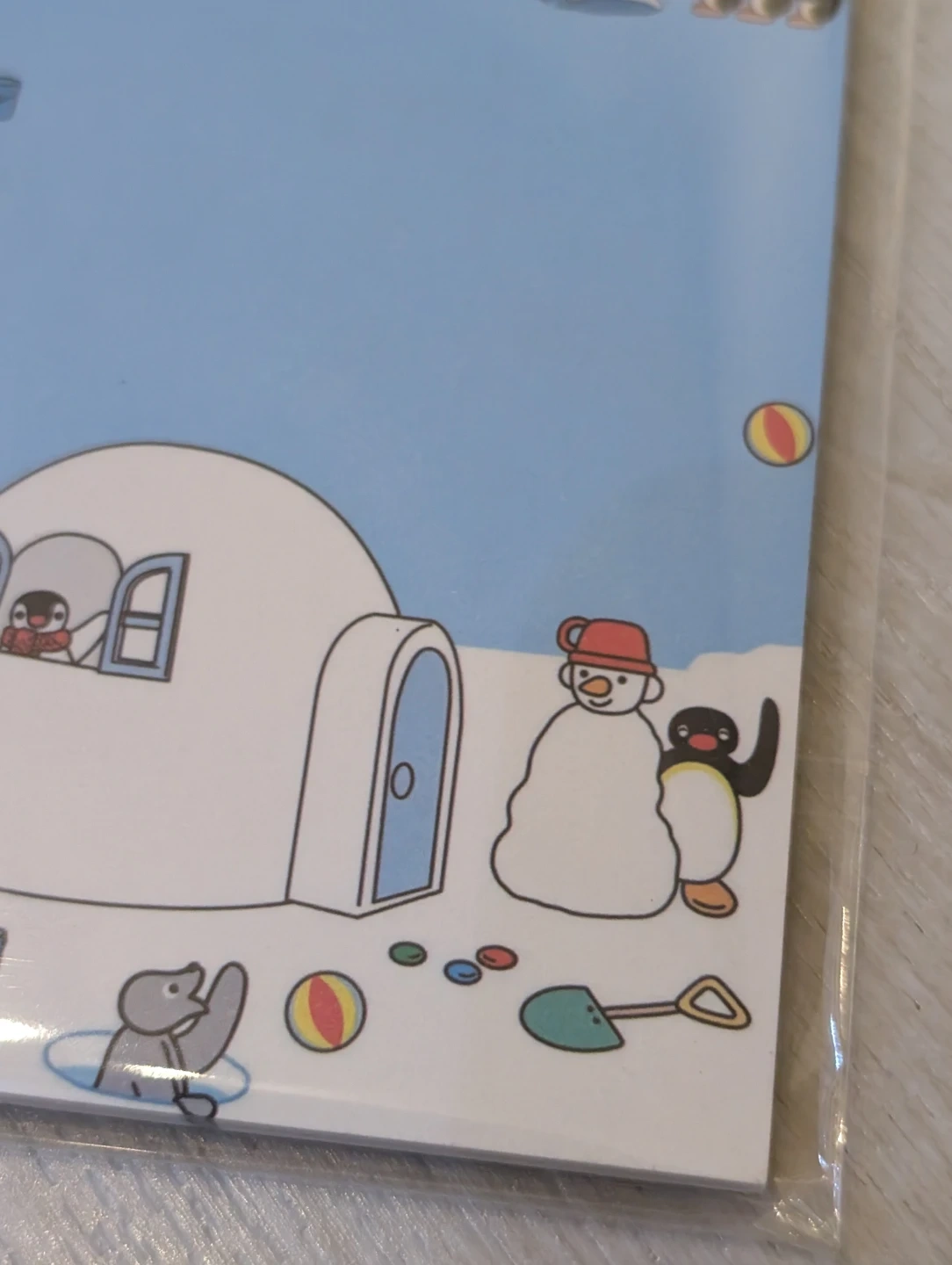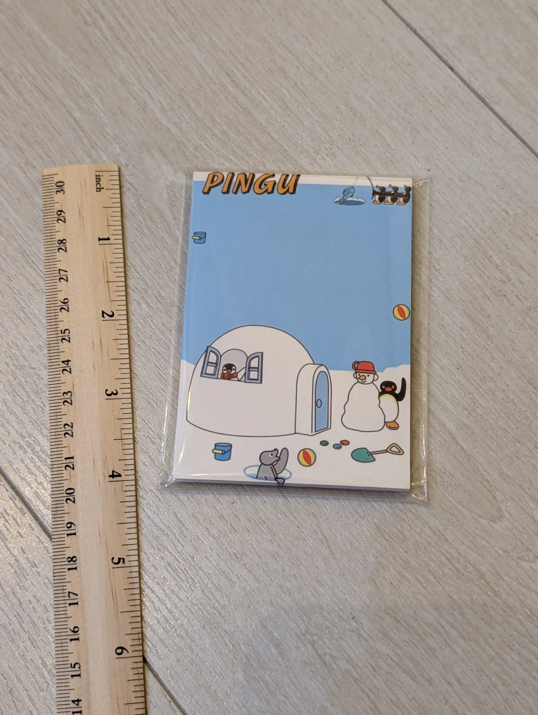 Cute Pingu themed notepad. It features Pingu characters in a snowy scene. Perfect for jotting down quick notes or to-do lists!