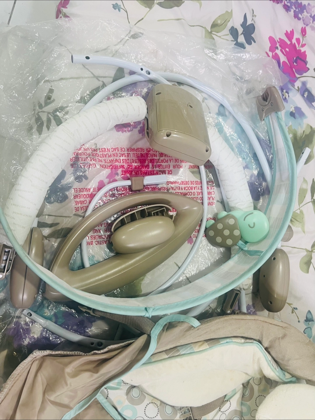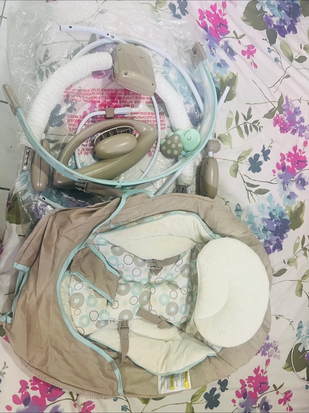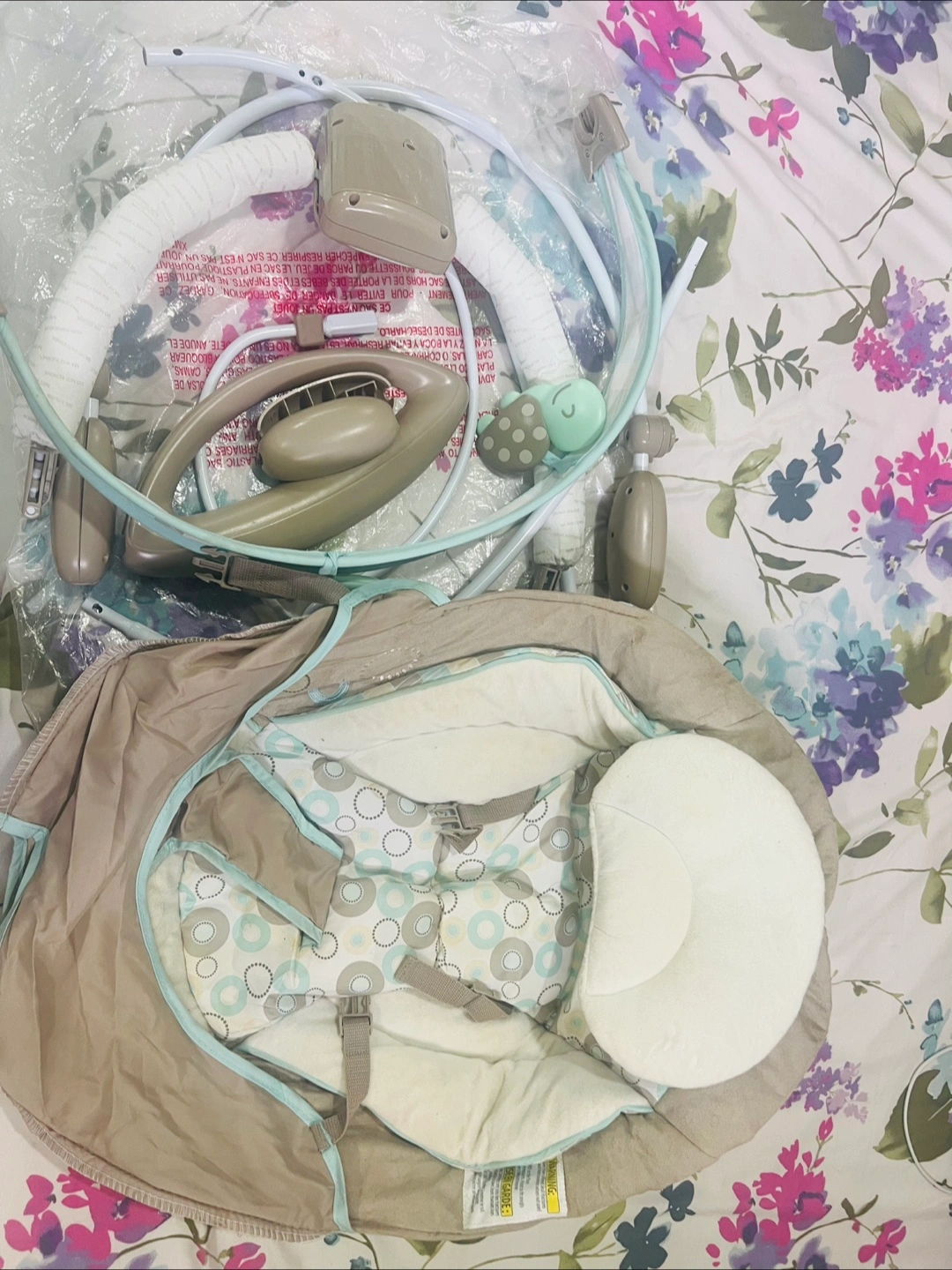 Selling a baby bouncer from Bright Starts! It's in great condition and ready for a new little one. It comes with all its components, ensuring a complete and enjoyable experience for your baby. This bouncer is designed to keep your baby comfortable and entertained!