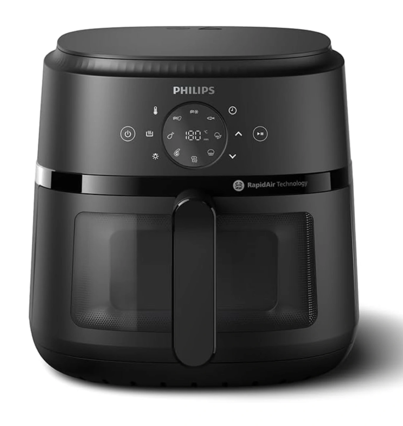CAPACITY: Ideal for any kitchen size, this versatile air fryer holds up to 800g of fries, 8 chicken drumsticks, or 800g of vegetables in its 6.6 quarts pan