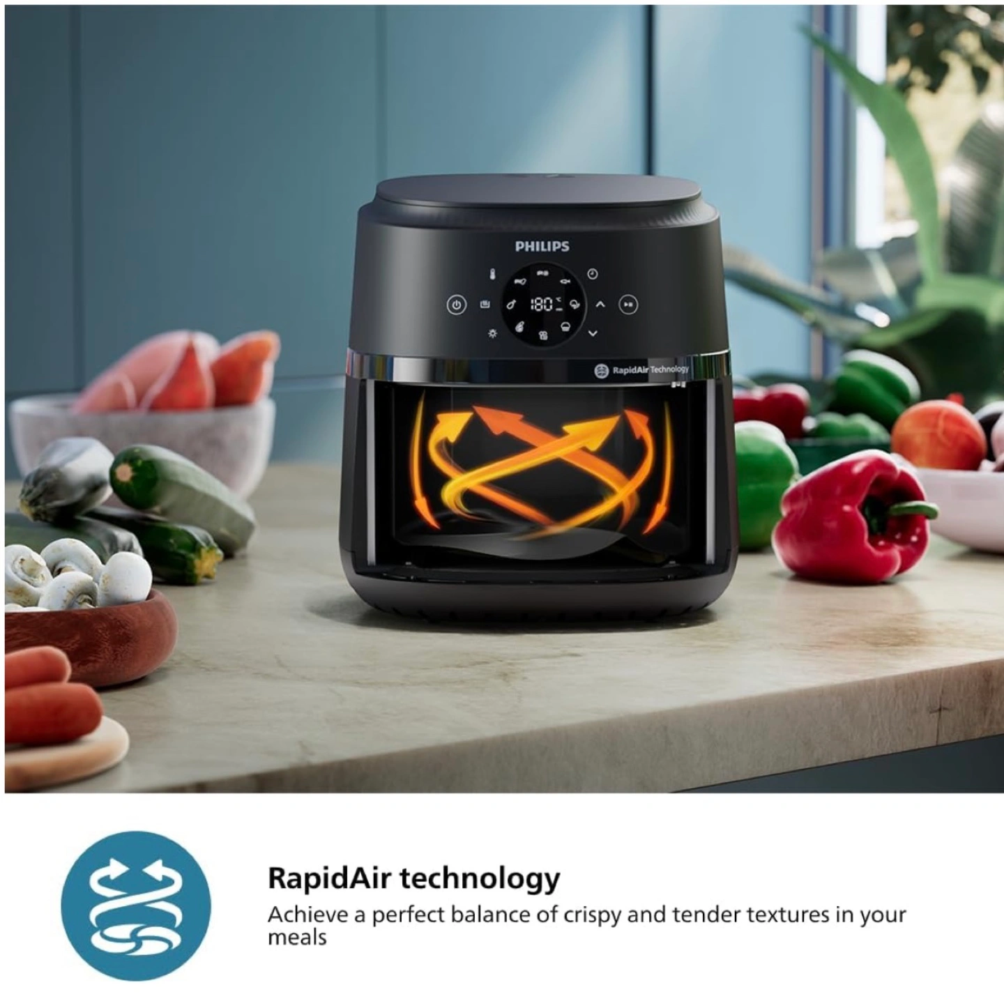 RAPIDAIR TECHNOLOGY: Enjoy irresistibly crispy exteriors and tender interiors with minimal oil, thanks to the Unique starfish bottom design ensuring rapid and delicious cooking every time