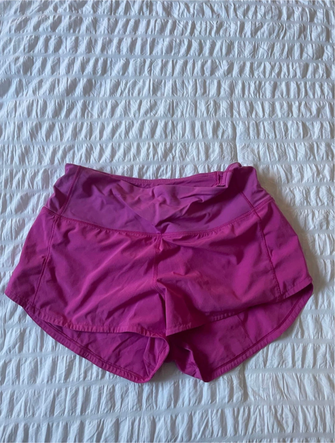 Lululemon Hotty Hot shorts in a vibrant pink. These athletic shorts are made for movement. They've got a built-in liner for comfort. Great for running or training!