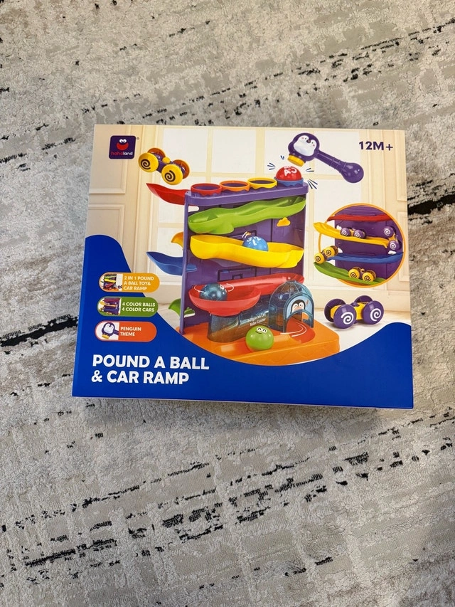This is a Hahaland 2 in 1 Baby Toys set for 12-18 month olds, designed for toddler development and includes a ball hammer toy and car ramp. It is in excellent condition. The vibrant colours and interactive features make it an engaging and educational toy for young children. * 2 in 1 design * Safe for children 12M+ * Includes 3 colour balls and 4 colour cars. Cash accepted.