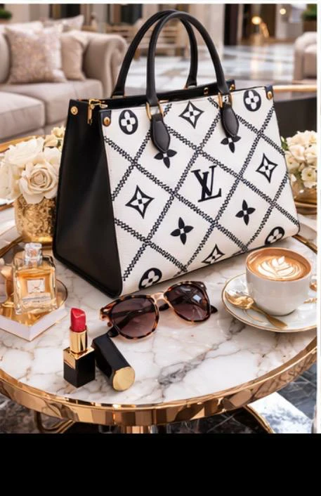 Stylish Louis Vuitton tote bag. Features the iconic LV monogram pattern. Leather handles and trim. A chic accessory for everyday use!