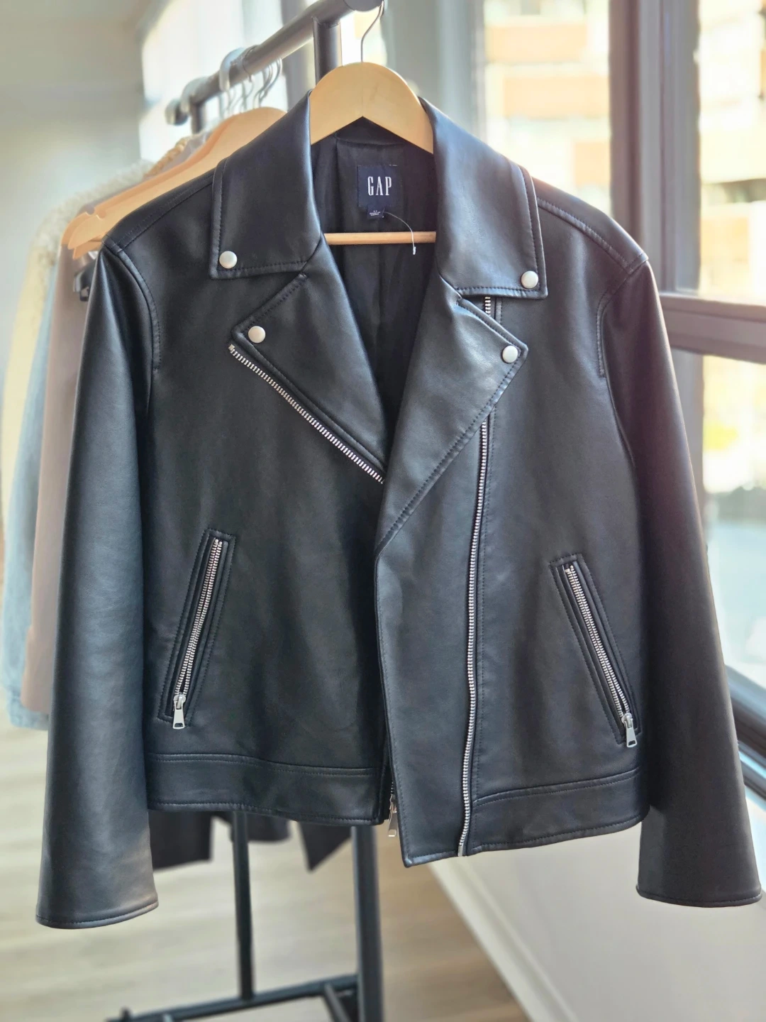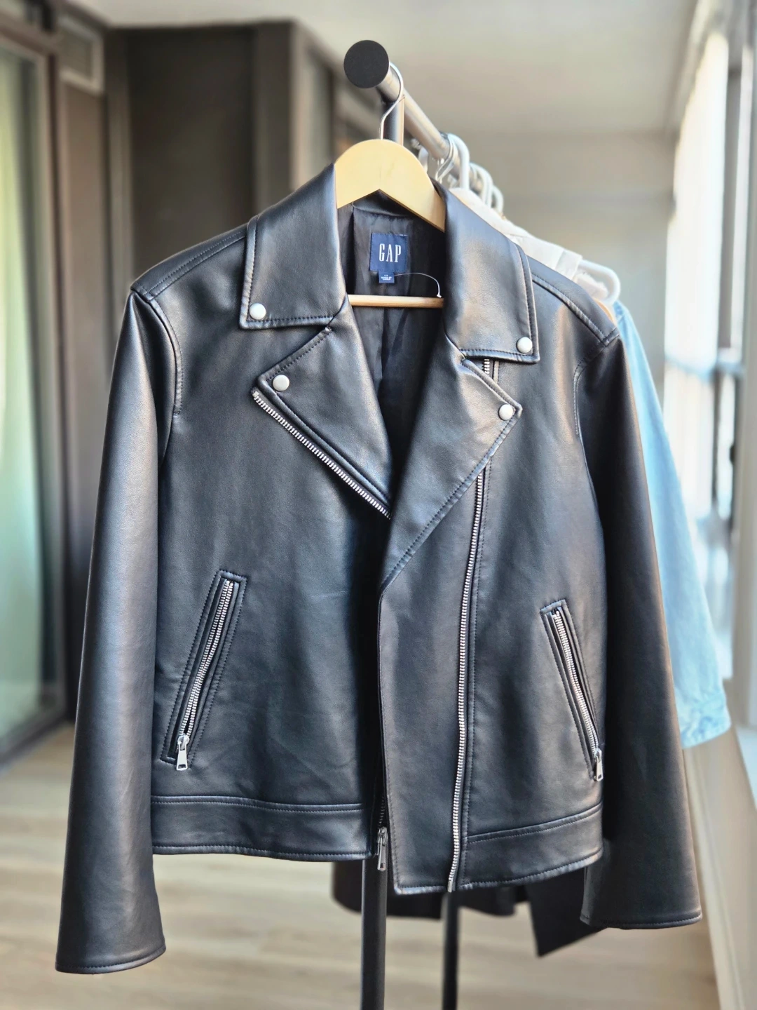 Buy & SellGAP Black Faux Leather Moto Jacket - Women's Size SGAP Black Faux Leather Moto Jacket - Women's Size S$10Classic black faux leather moto jacket from GAP. It's a women's size small. Some minor scuffing is visible on the fabric near the sleeve.ConditionOkaySizeSmallWHERE TO MEETyonge and SheppardView MapSELLERverifiedDinaSheppard-Yonge1548 reviews0 chats·1 favorites·20 viewsSEND CHAT TO SELLERHi Dina! I’m interested in your listing.Hi Dina! I’m interested in your listing.Get the Karrot app to chatSign In to chat