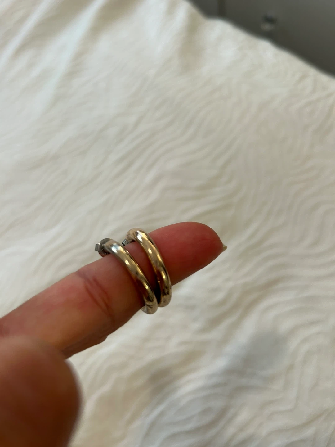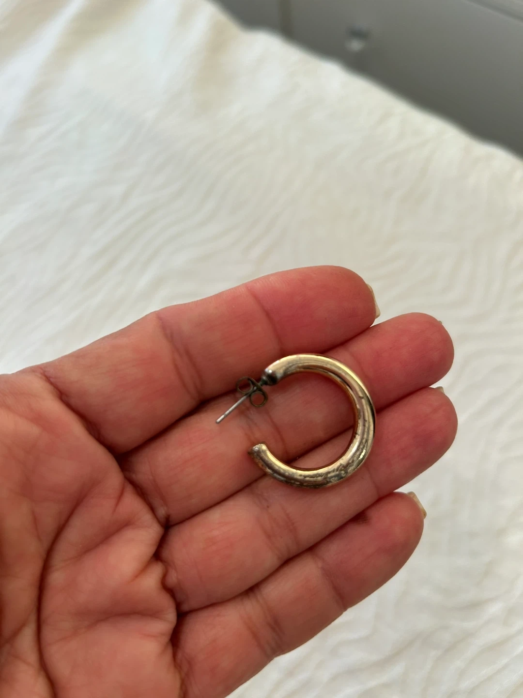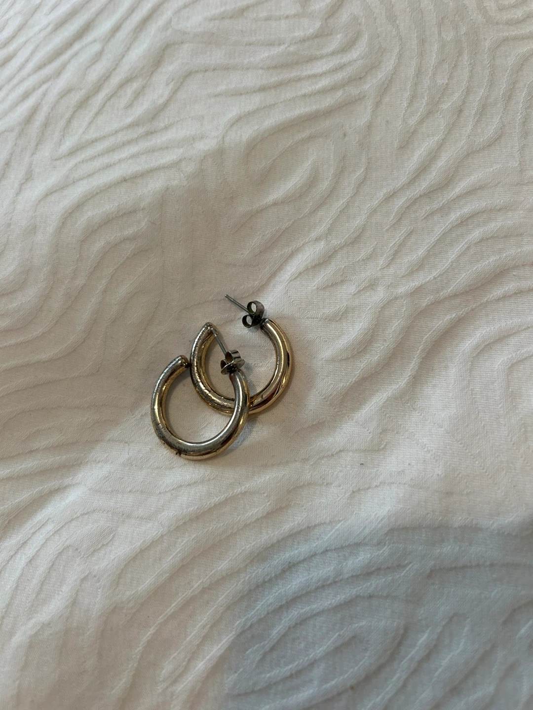 Selling a pair of gold coloured hoop earrings. They're in good condition and ready for a new owner!