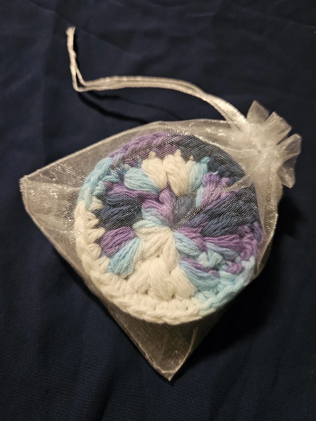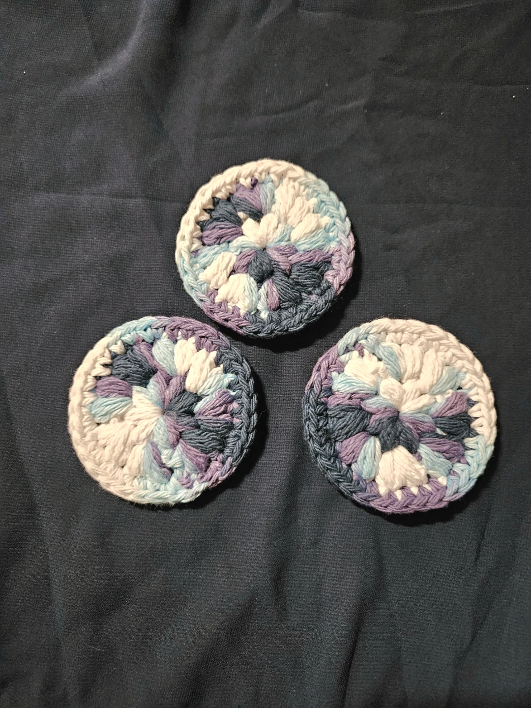 Here's a set of three handmade crochet makeup remover pads! They're new and perfect for gentle and eco-friendly makeup removal.