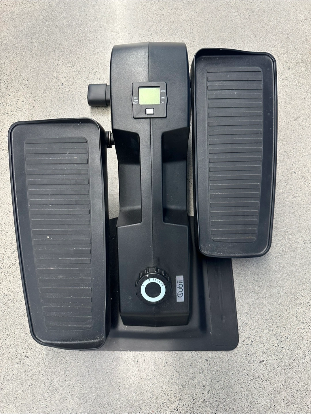 Excellent used condition. Black Cubii elliptical machine. Features two foot pedals and an adjustment dial. The elliptical includes a digital display with different settings.