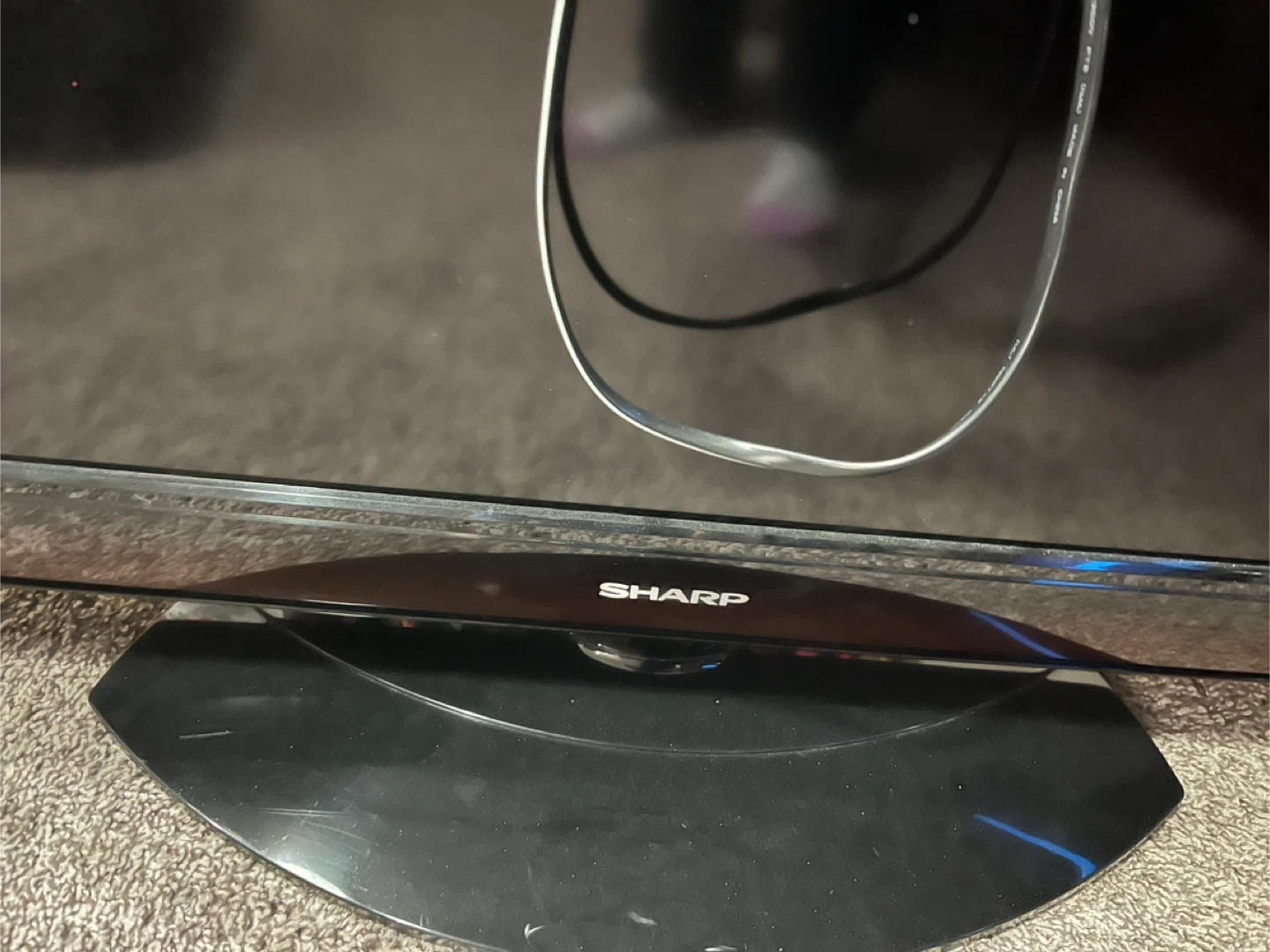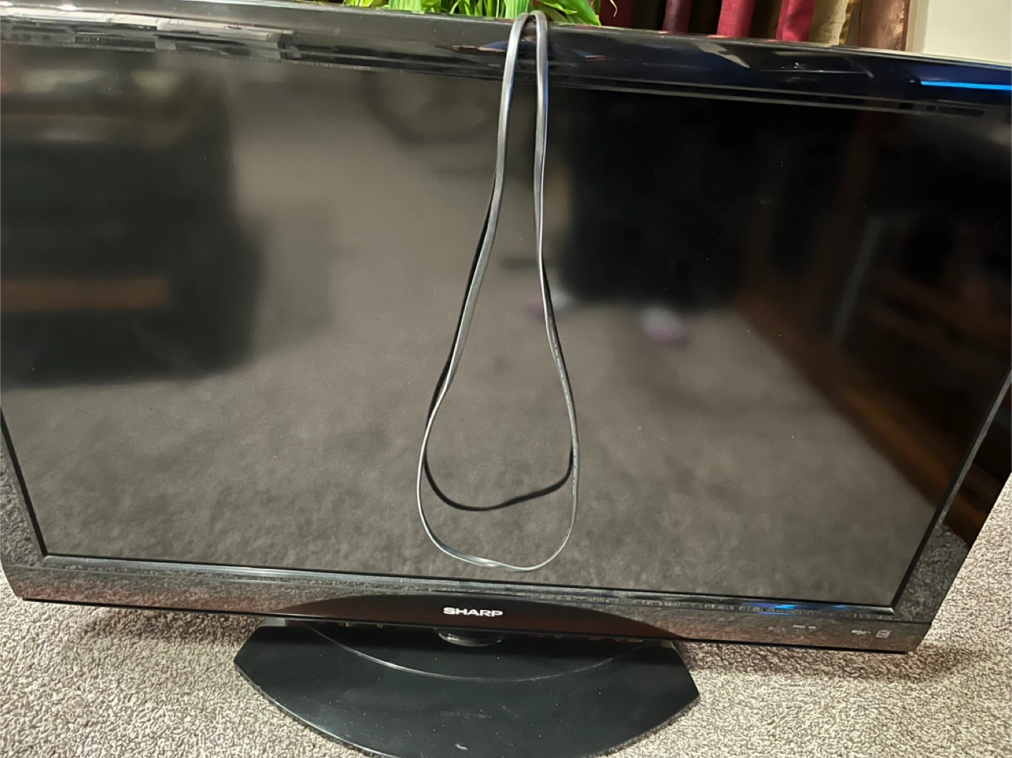 This is a Sharp Aquos flat-screen television. It features multiple input ports for various devices. Comes with power cord.