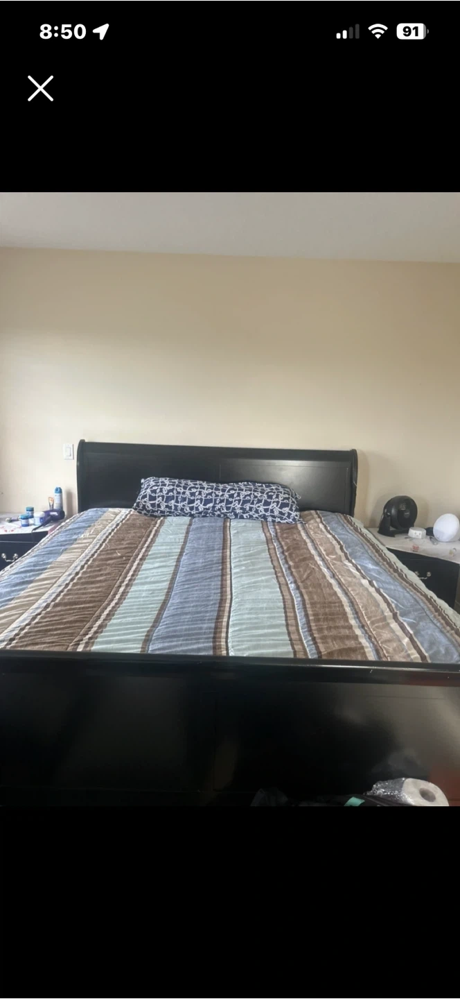 King Size Bed & Black Dresser with 5 Drawers