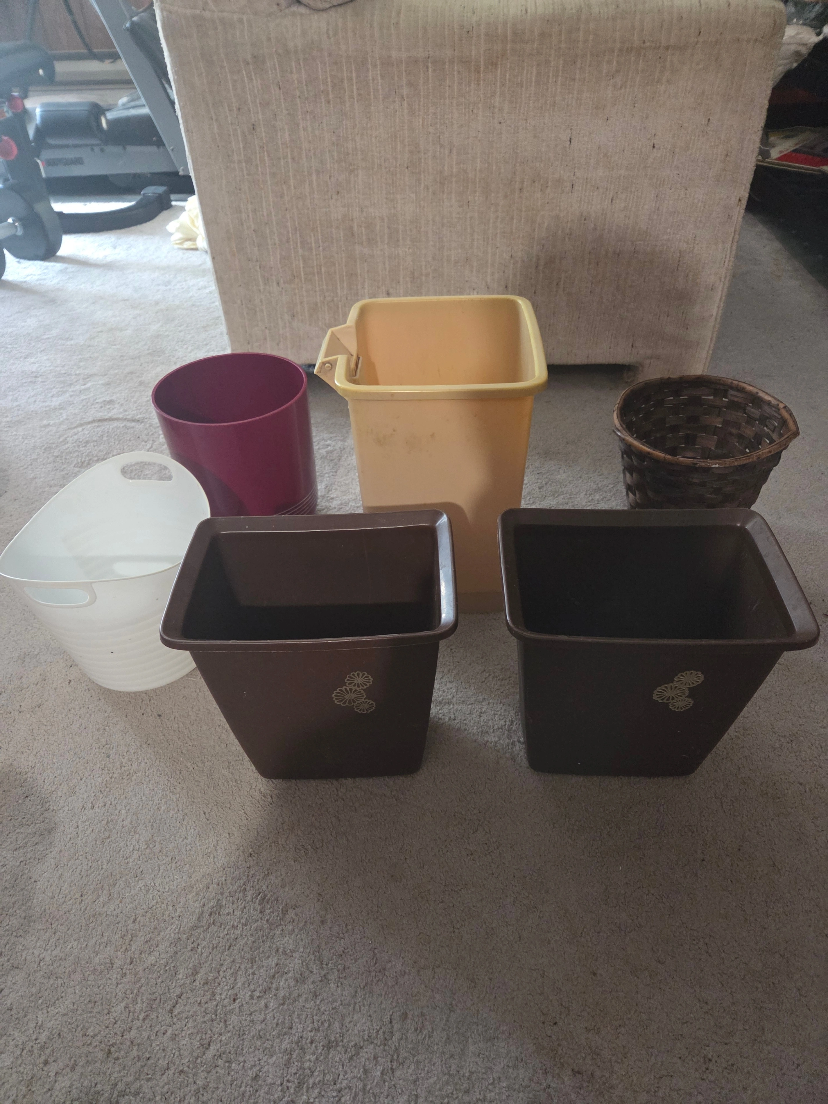 - Floral Bins: Classic 70s daisy pattern, thick durable plastic. Highly collectible.