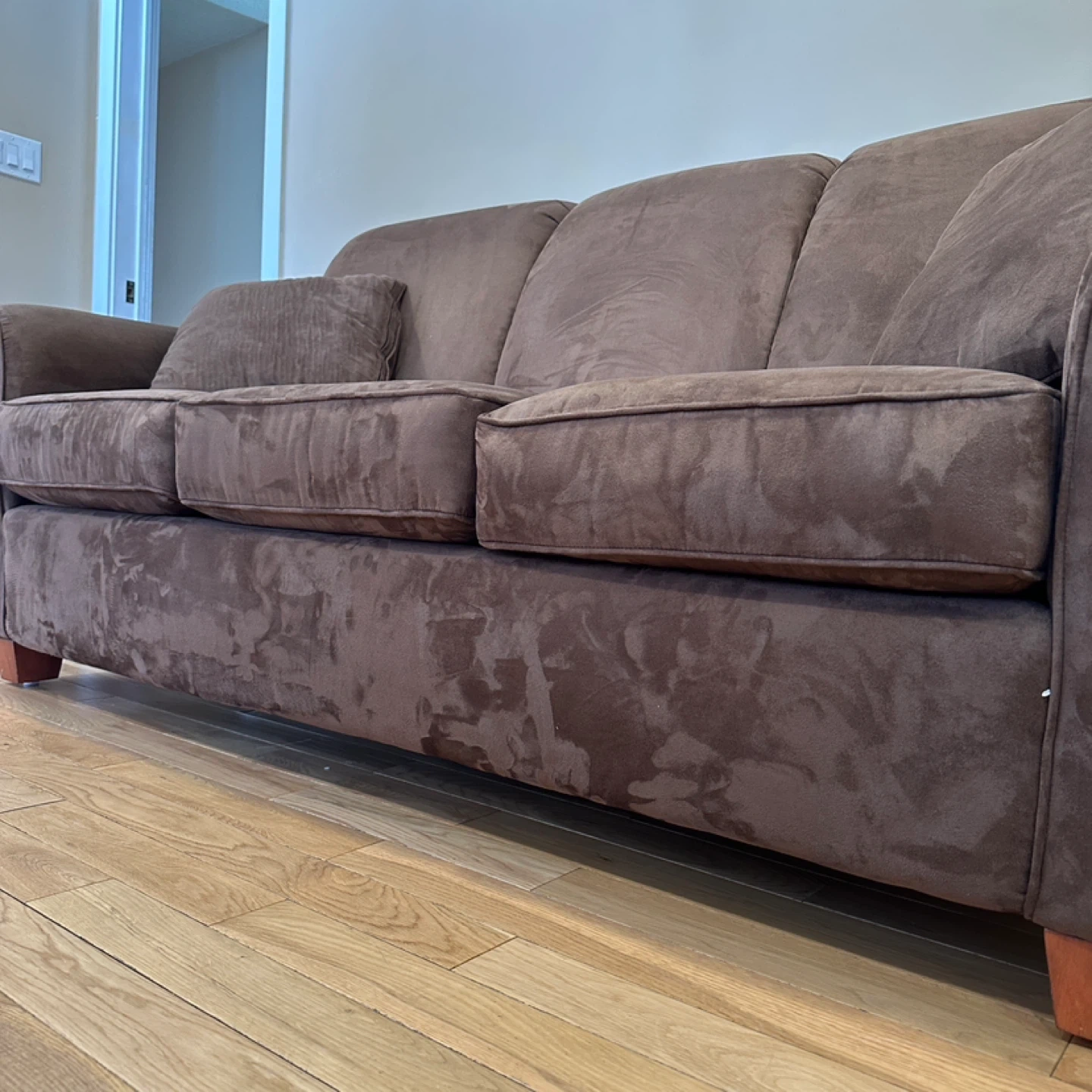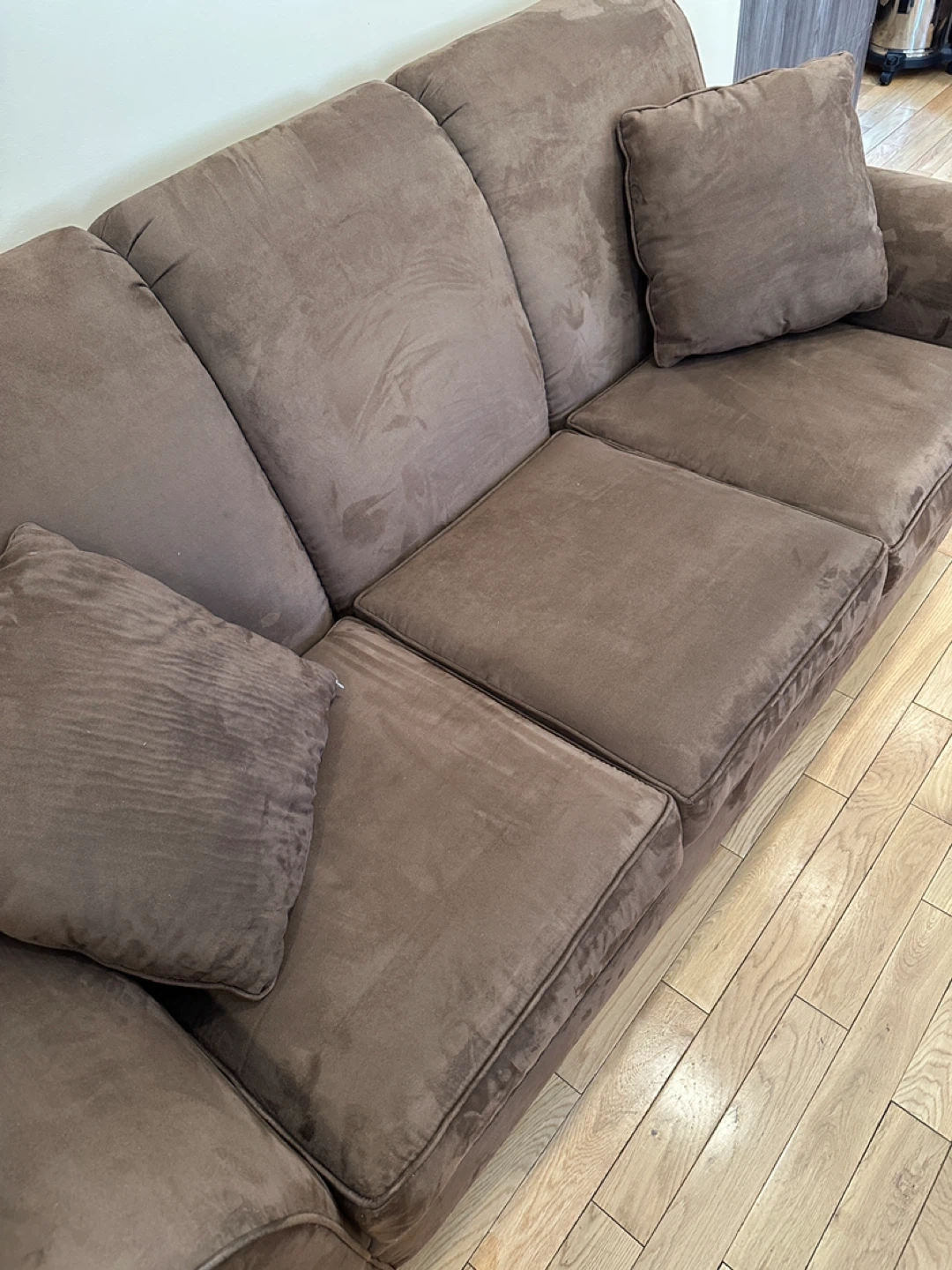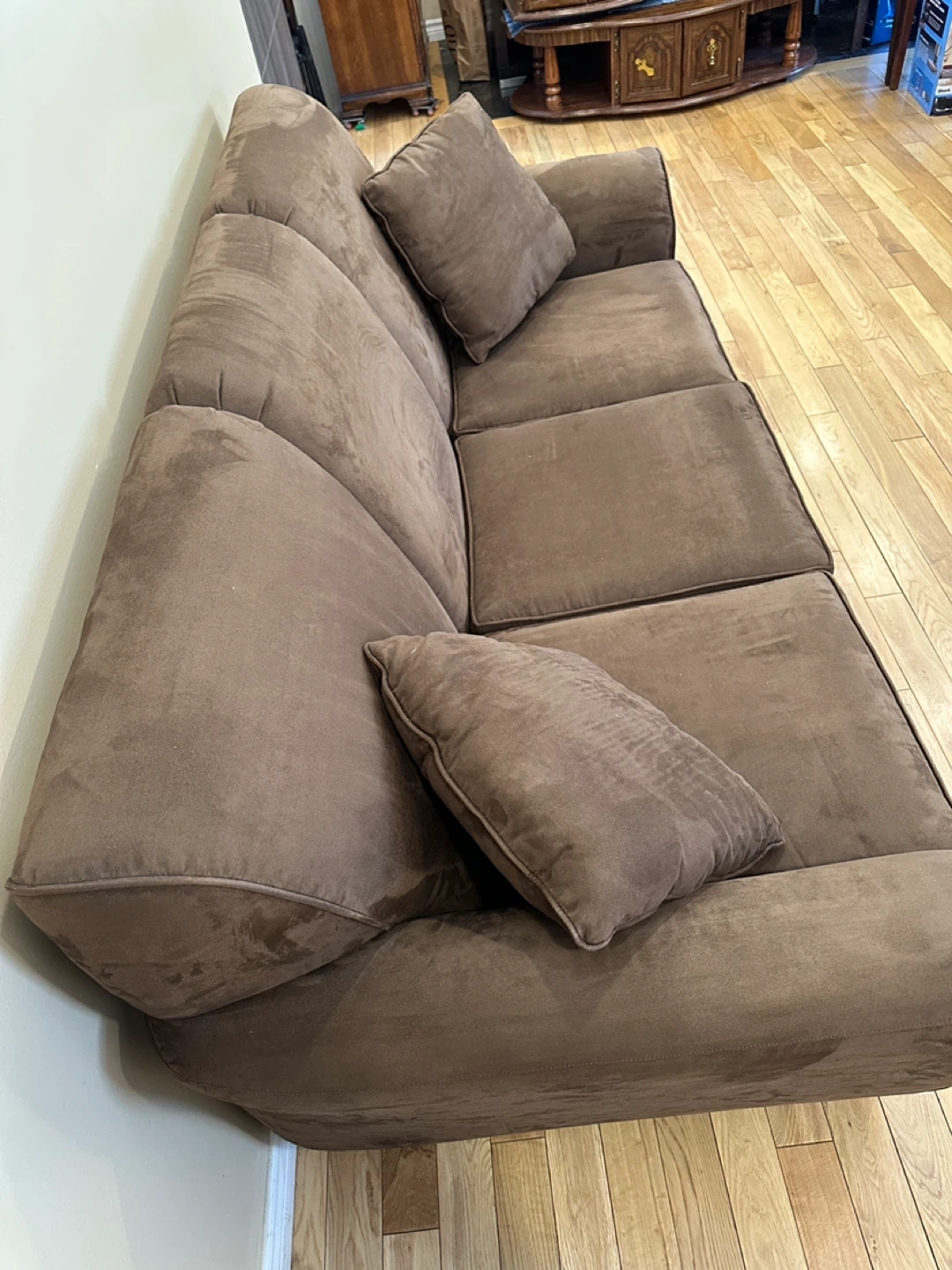 Like New Modern Brown Microsuede Sofa (CAN DELIVER
