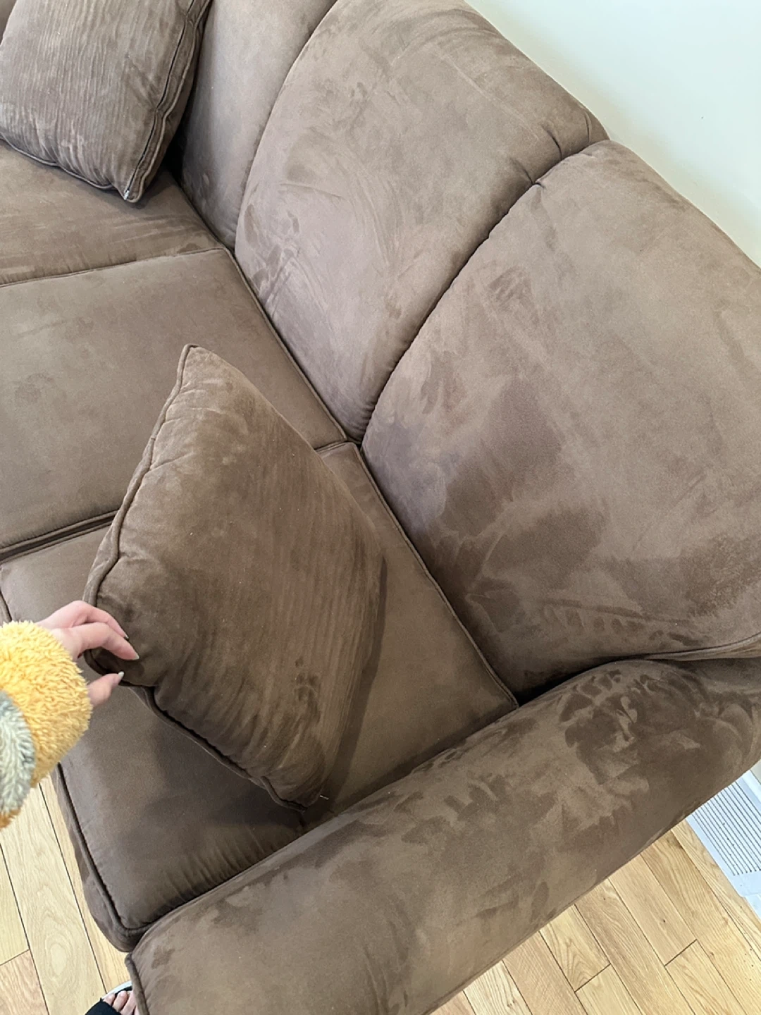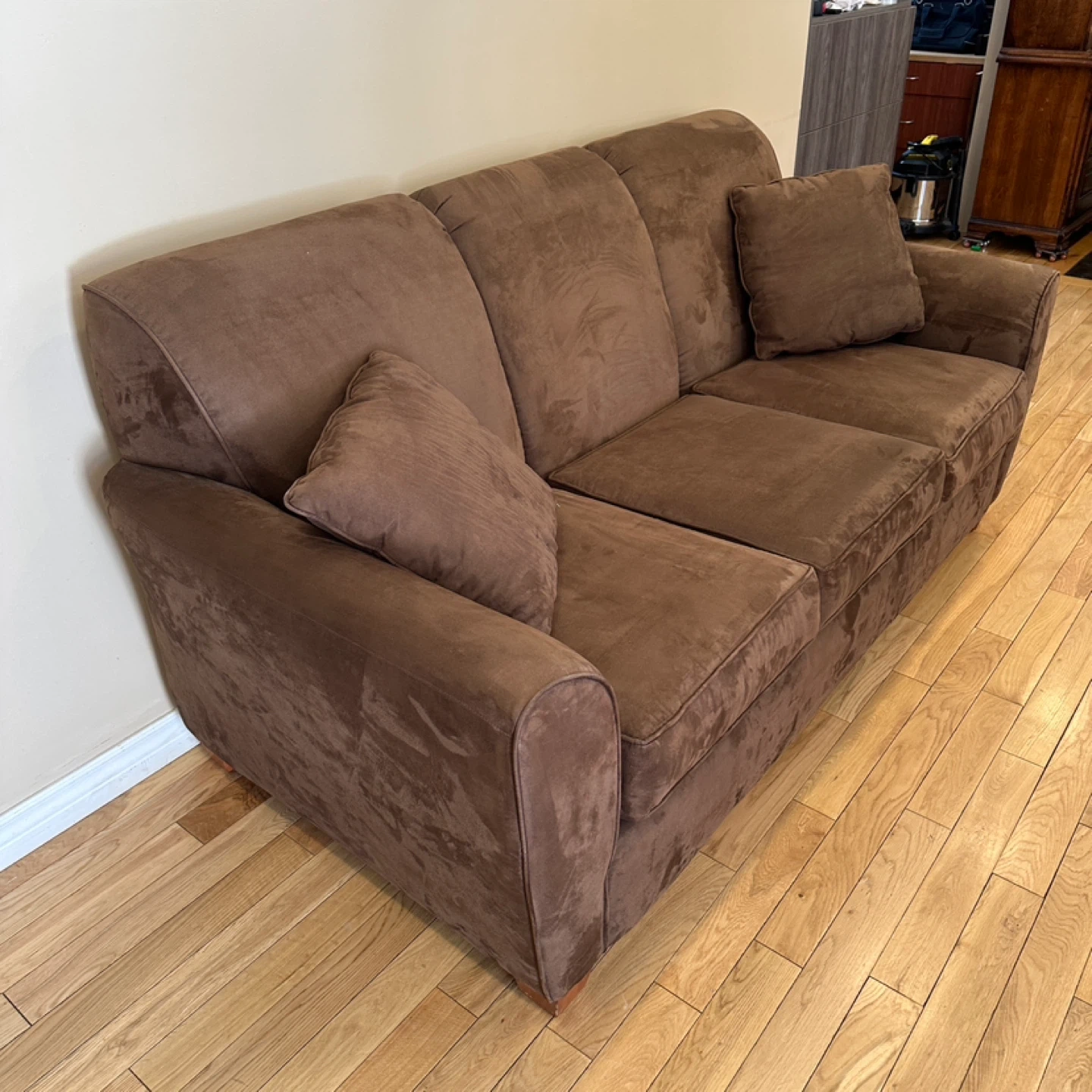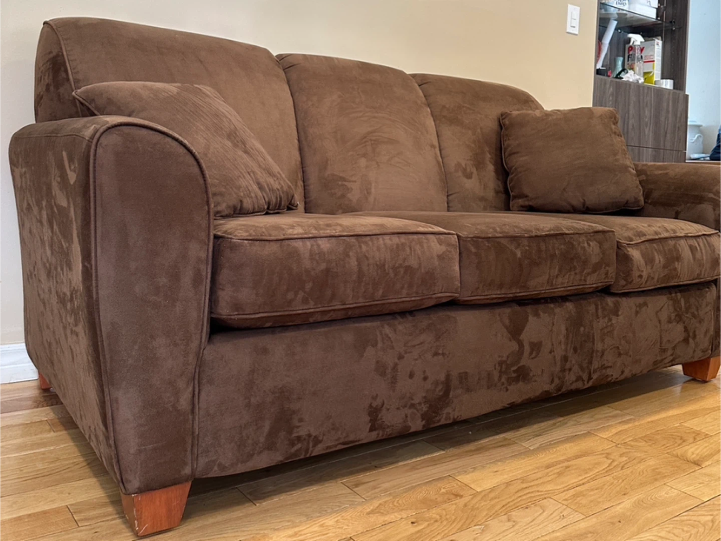 Like New Modern Brown Microsuede Sofa (CAN DELIVER