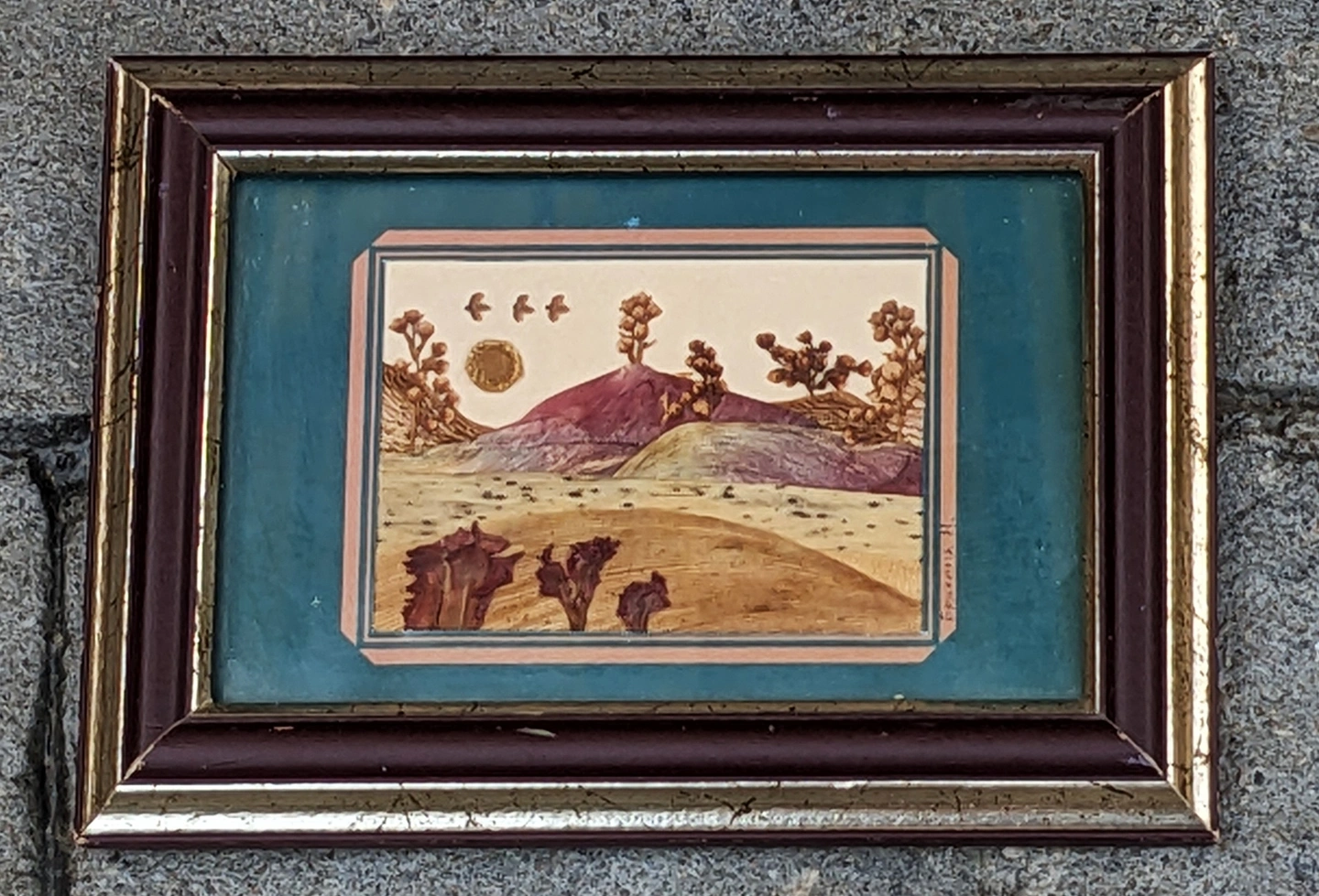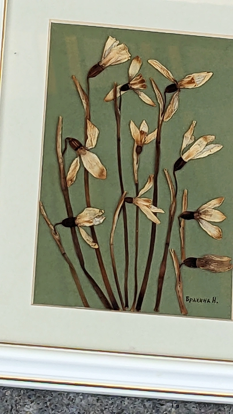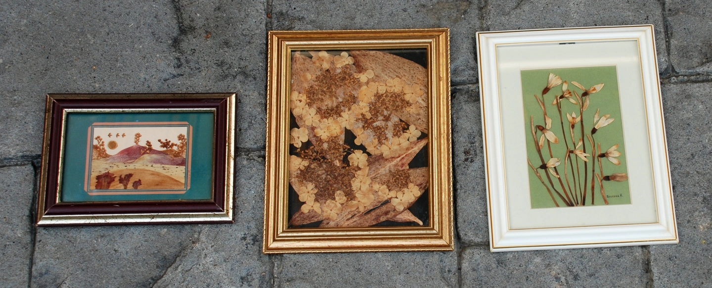 3 Old Vintage Pictures made of natural material, flowers and leaves.