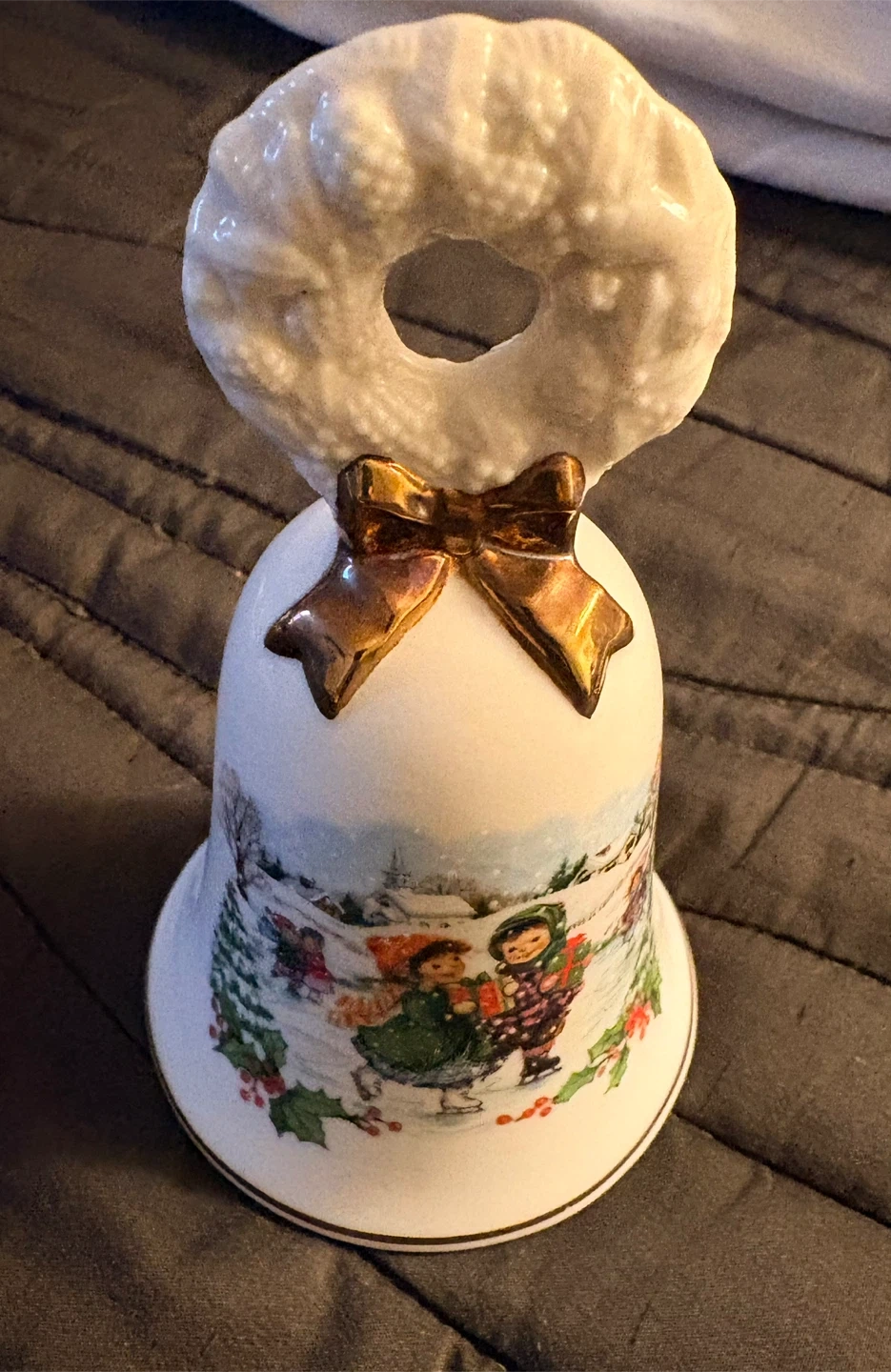 Selling an Avon Christmas Bell from 1986! This beautifully crafted bell bears the Avon Source of Fine Collectibles symbol, your assurance of fine quality craftsmanship and highest standard of excellence. It can be cleaned with a damp cloth and dried with a soft one. The box is included!