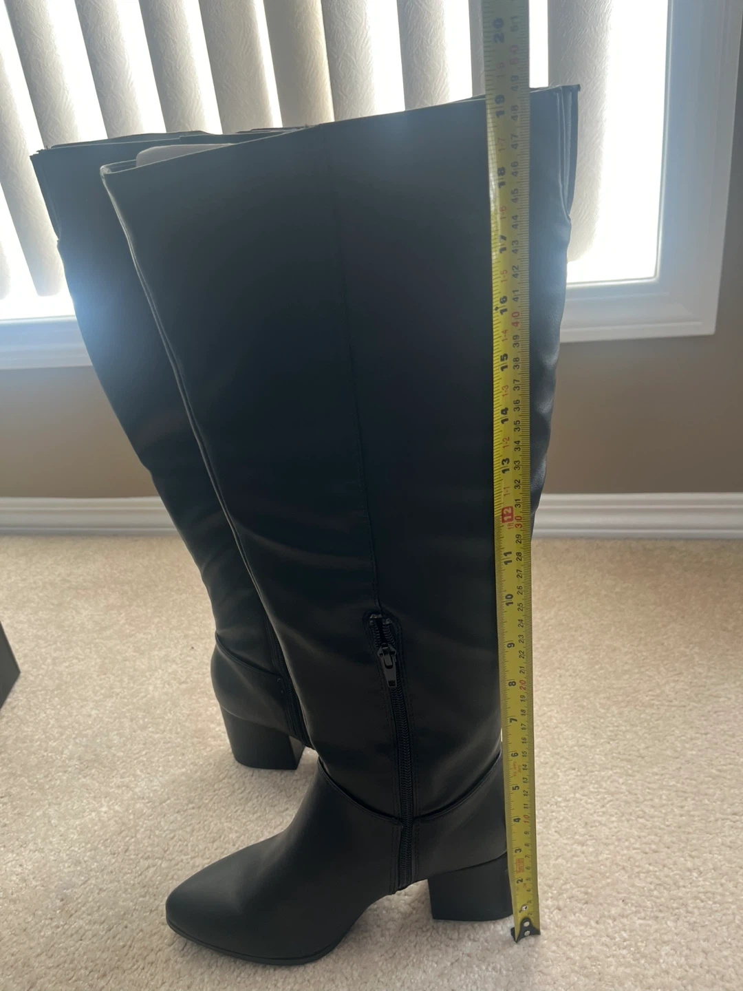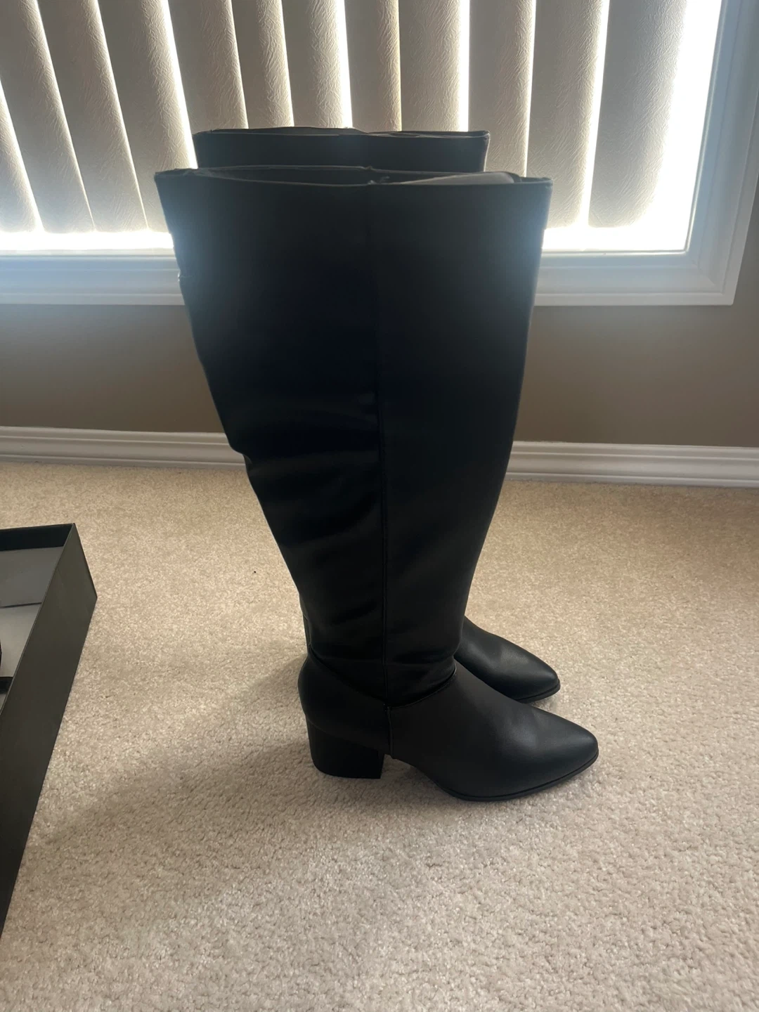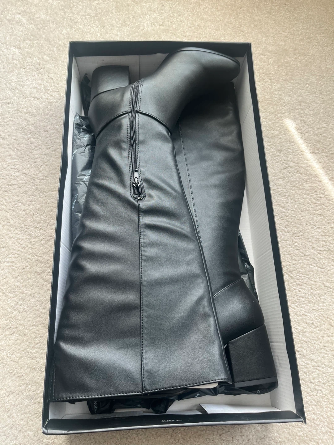 Black knee-high boots with a zipper closure. Model name is Rayah. Includes original box. These boots are a size 7. They are knee-high in length. Brand new and never worn.