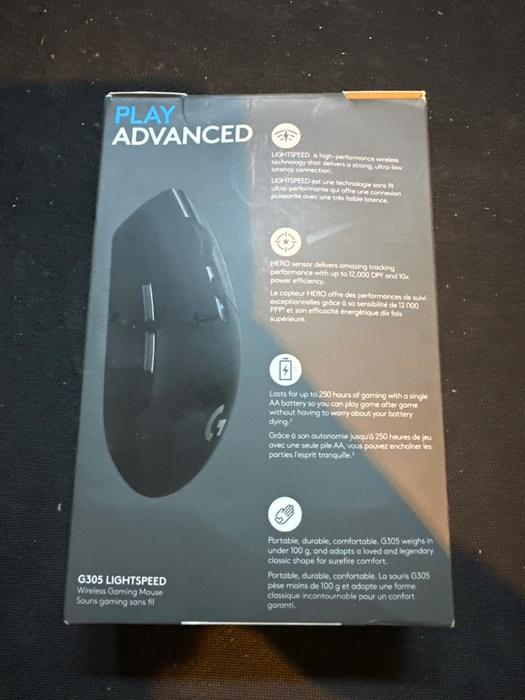 Logitechs G305 Lightspeed wireless gaming mouse. Still has original packaging
