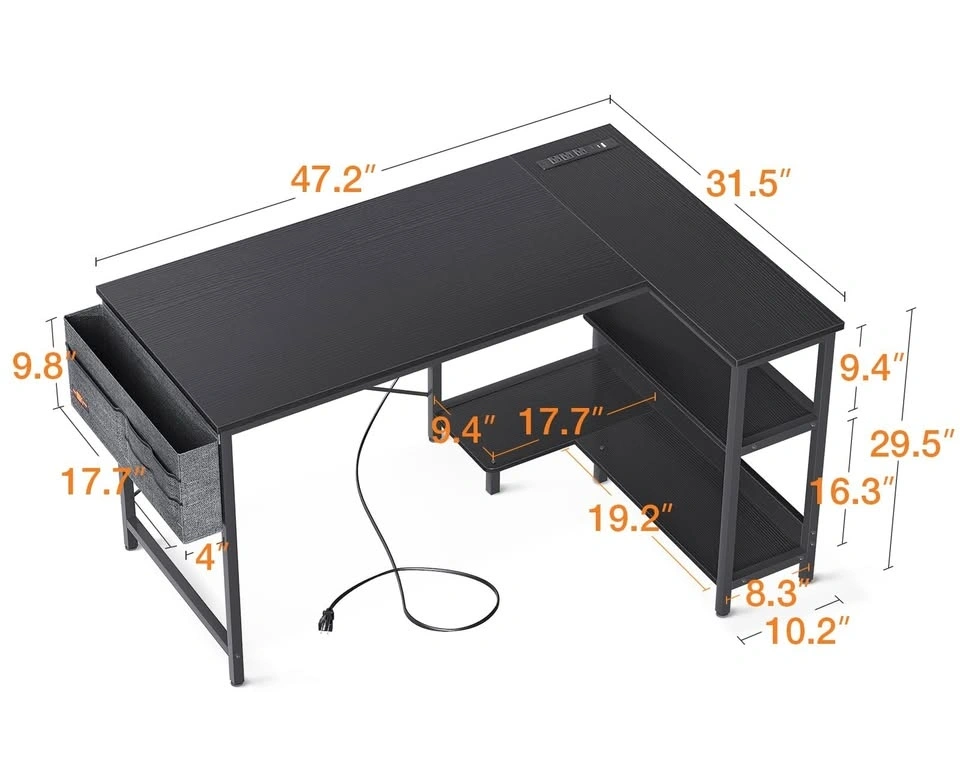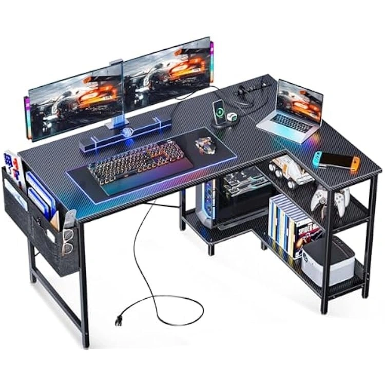 48 Inch L Shaped Gaming Computer Desk with Power Outlets (Revers