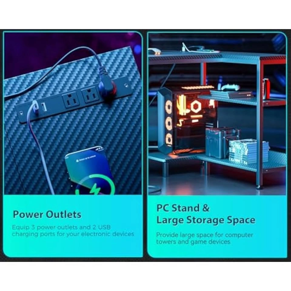 48 Inch L Shaped Gaming Computer Desk with Power Outlets (Revers