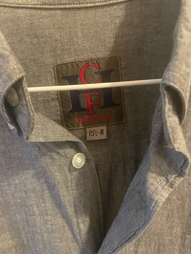 This is a men's Hathaway short sleeve button-down shirt, perfect for a casual yet stylish look. As you can see in the pictures, this pre-owned shirt is in good condition and ready to wear. Here are some details: * Brand: Hathaway * Sleeve Length: long Sleeve * Size: 15 1/2 R Grab this classic shirt for a great deal! By the way, if the ad's still up, then yes, it's still available!