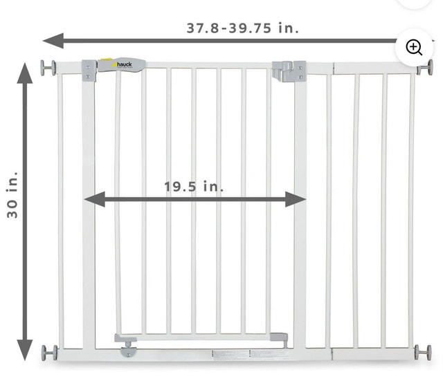 This Hauck Safety Gate is perfect for keeping your little ones safe! It fits openings of various sizes, providing a secure barrier. Specifications: Brand: Hauck, Type: Safety Gate, Colour: White, Dimensions: 30 inches in height and adjustable width between 37.8-39.75 inches. If the ad is up, it's still available! Cash accepted.
