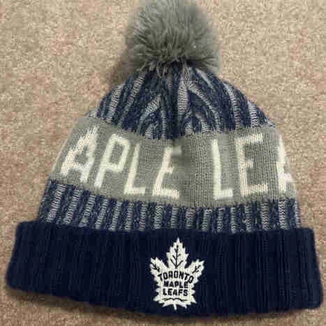 Keep your young fan warm with this Toronto Maple Leafs youth toque! This gently used toque features the team's iconic logo and colours, perfect for showing support at the rink or on the street. A similar toque sells for about $20 on Kijiji. If the ad is still up, it's still available!